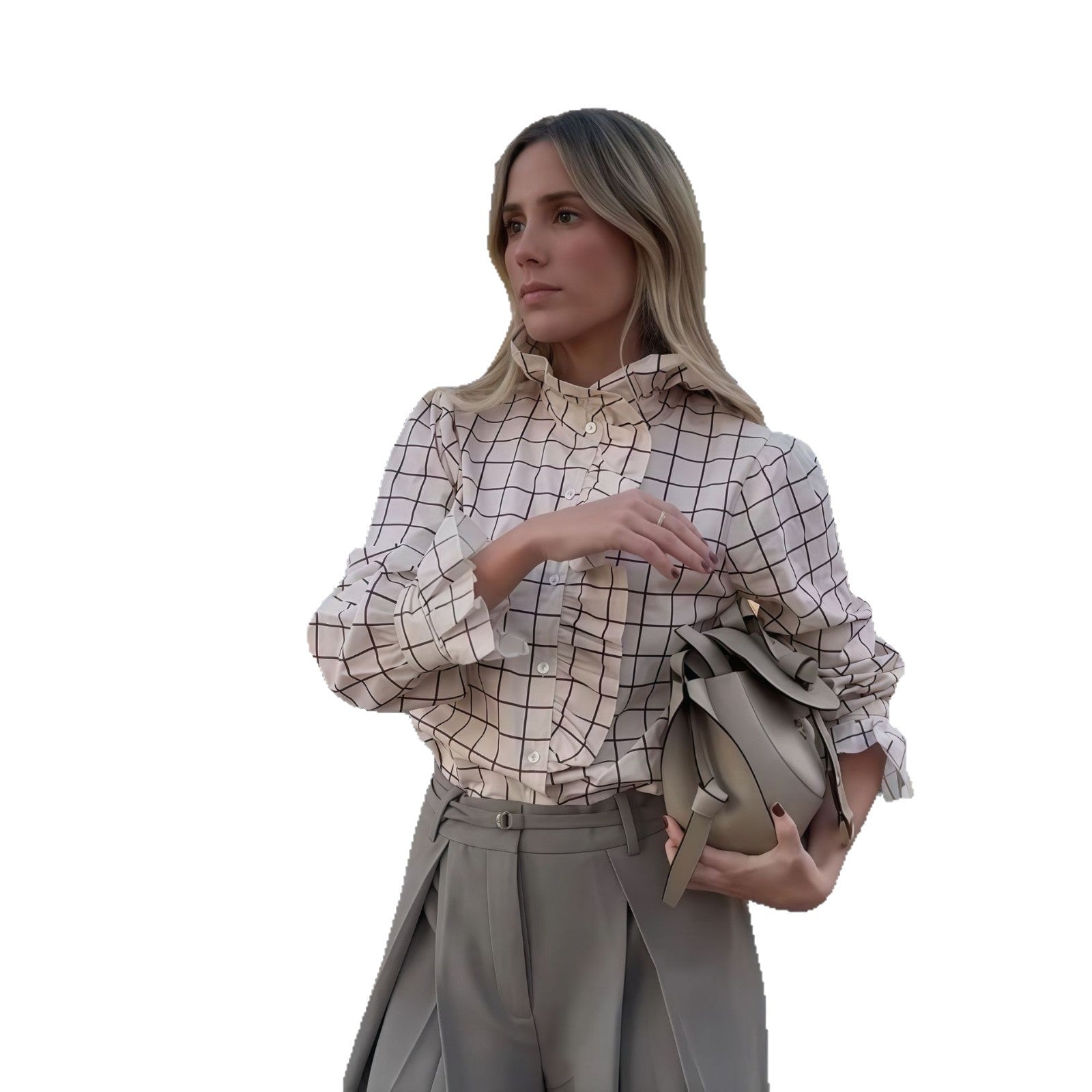 Damen Karierte Bluse mit eleganten Rüschendetails Fudus