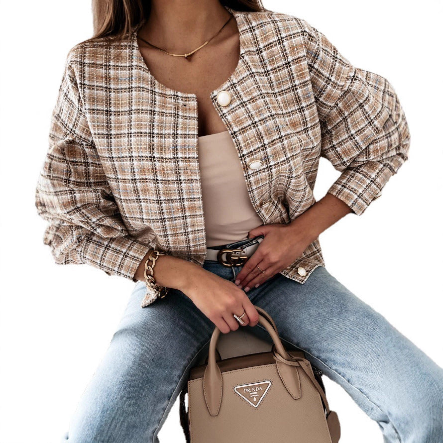 Damen Karierte Bouclé-Jacke Fudus