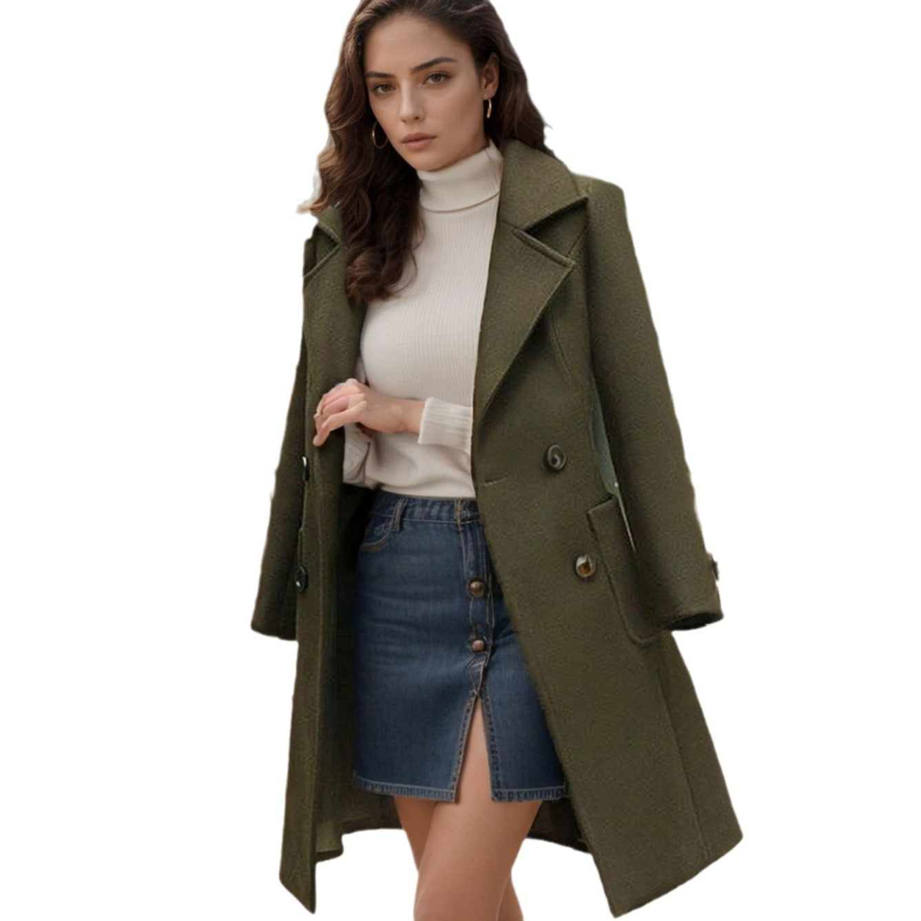 Damen Klassischer Wollmantel mit doppelter Knopfleiste und großzügigen Taschen Fudus