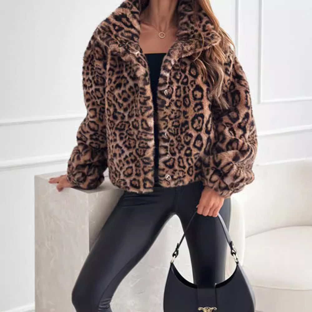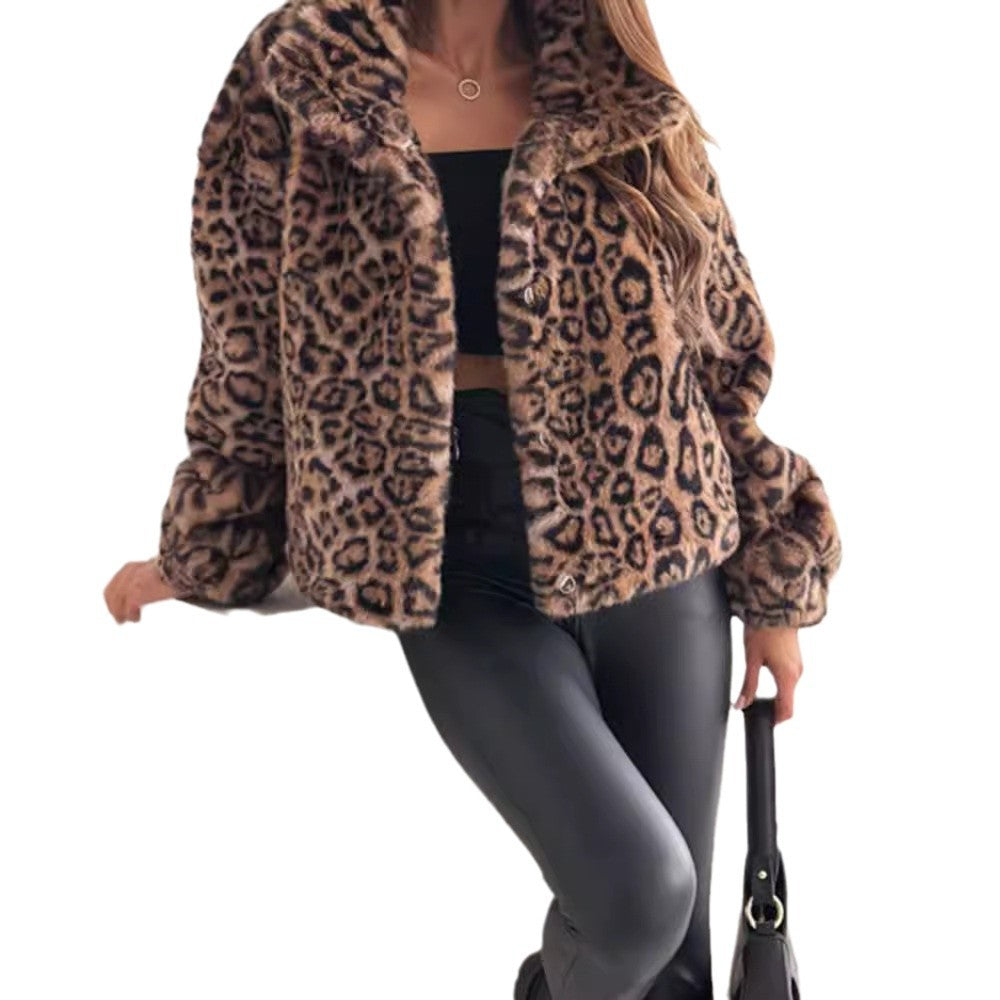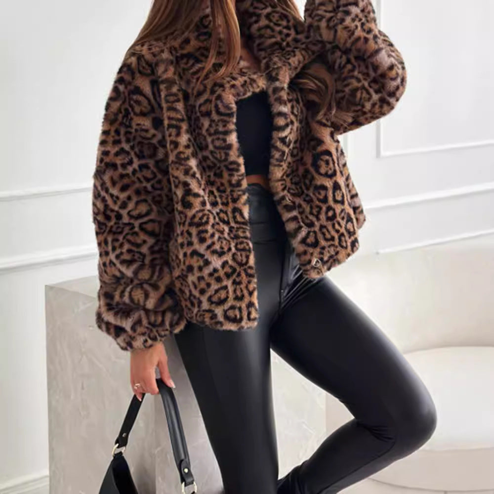 Damen Kunstfelljacke im modischen Leopardenmuster Fudus