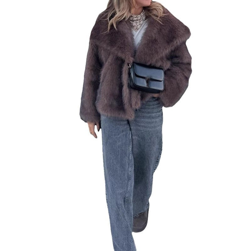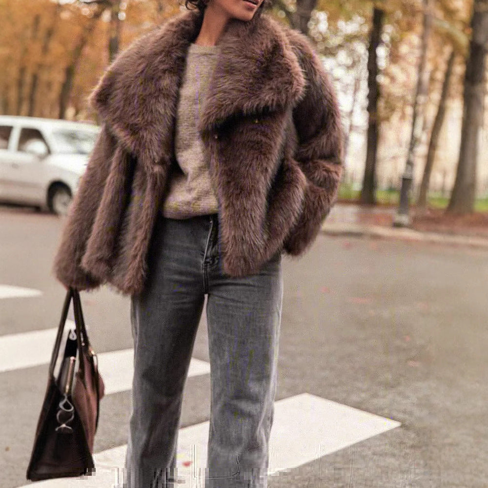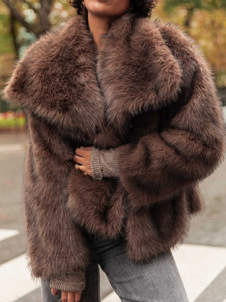 Damen Kunstfelljacke mit breitem Kragen und luxuriösem Schnitt Fudus