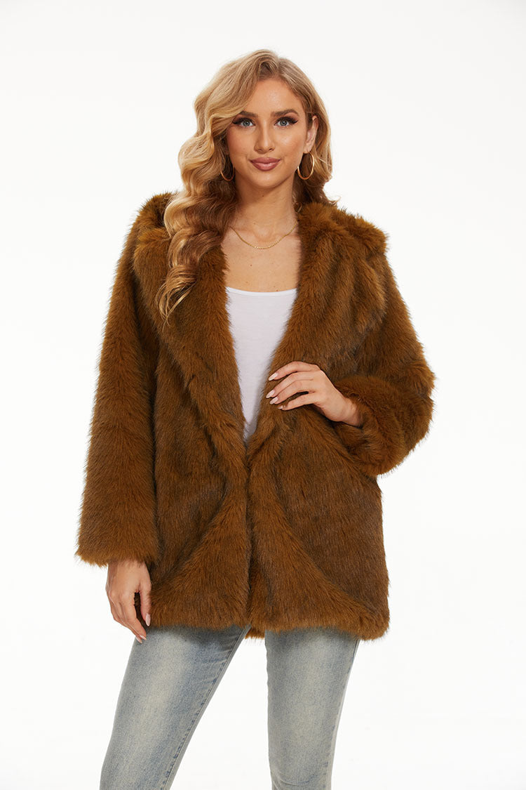 Damen Kunstfelljacke mit kuscheliger Kapuze und modernem Schnitt Fudus