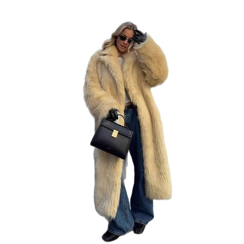 Damen Kunstfellmantel mit voluminösen Ärmeln und elegantem Schnitt Fudus