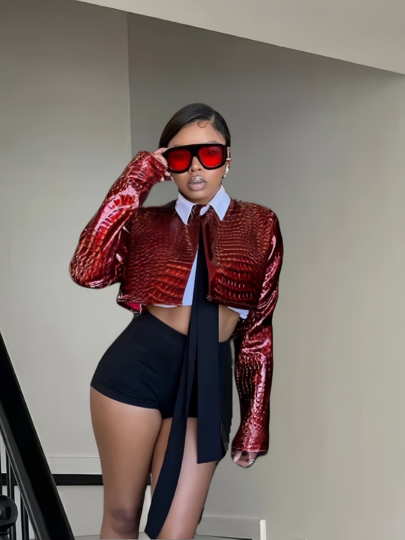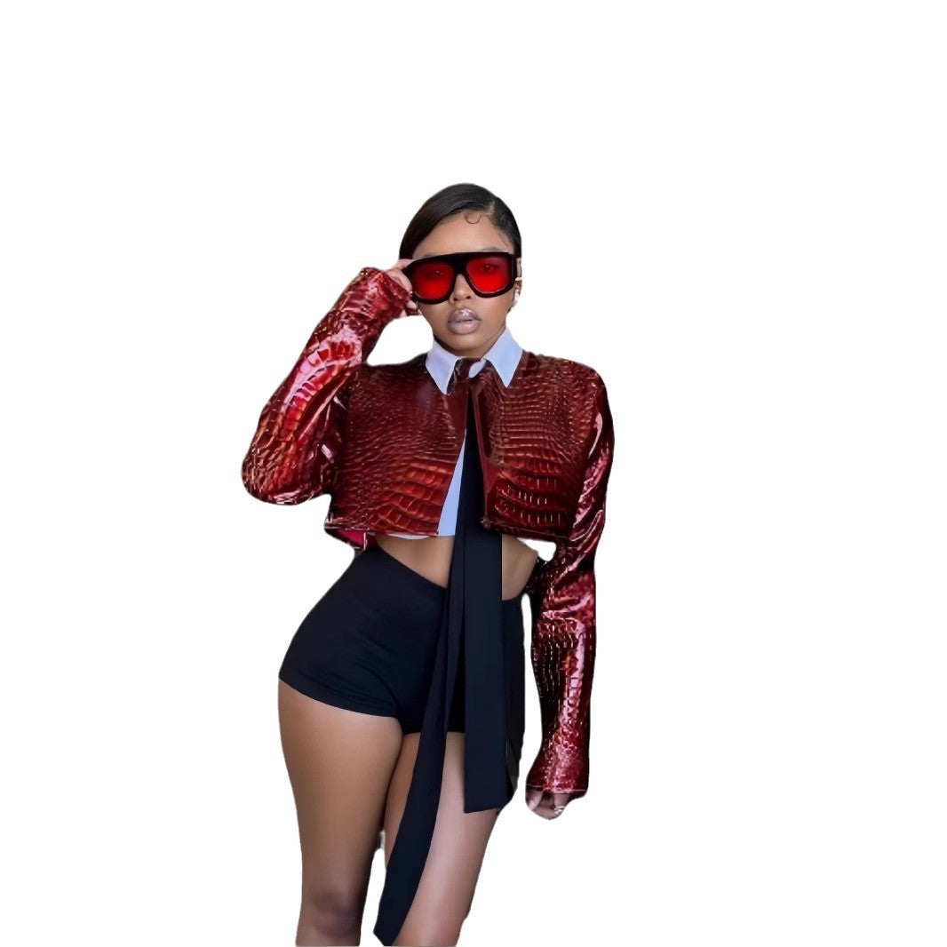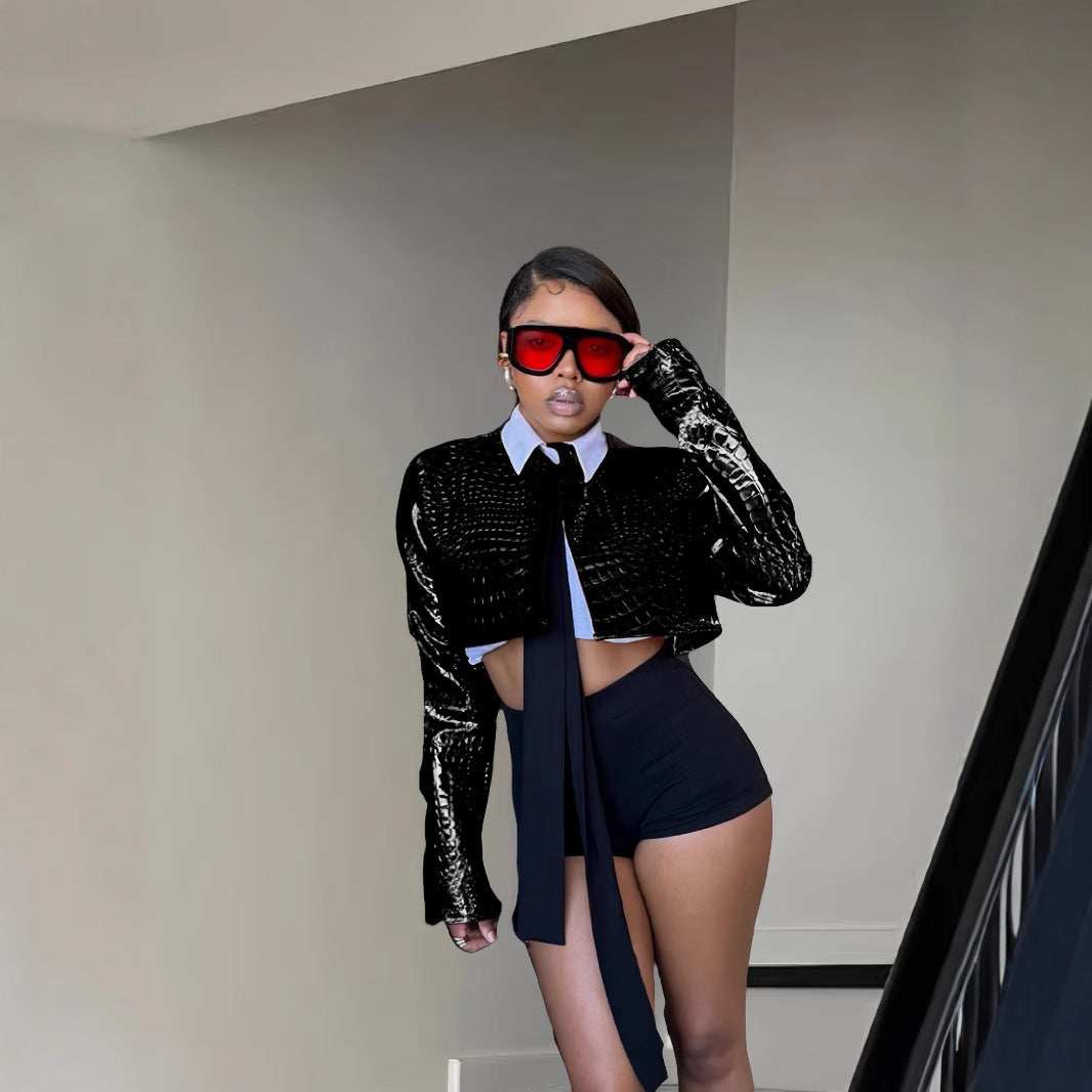 Damen Kunstlederjacke im modernen Krokodil-Design Fudus