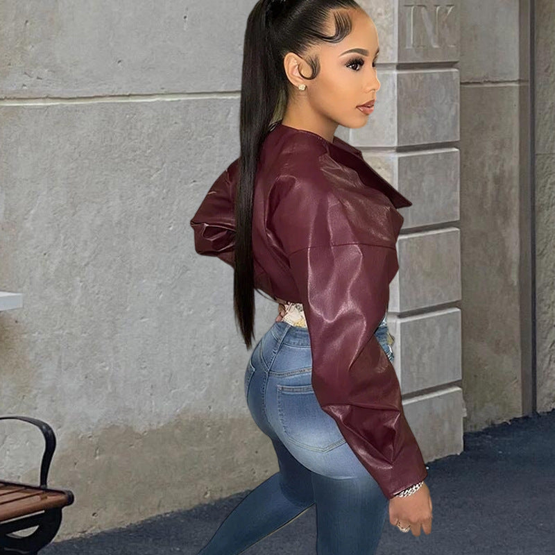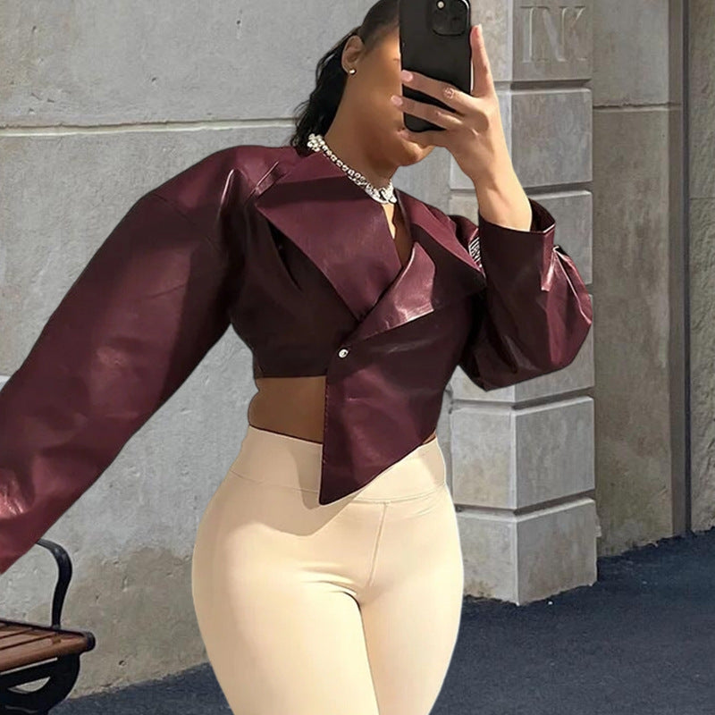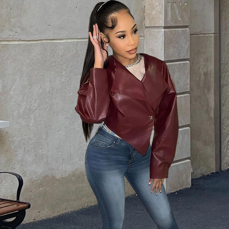 Damen Kunstlederjacke mit asymmetrischem Schnitt und modernen Details Fudus