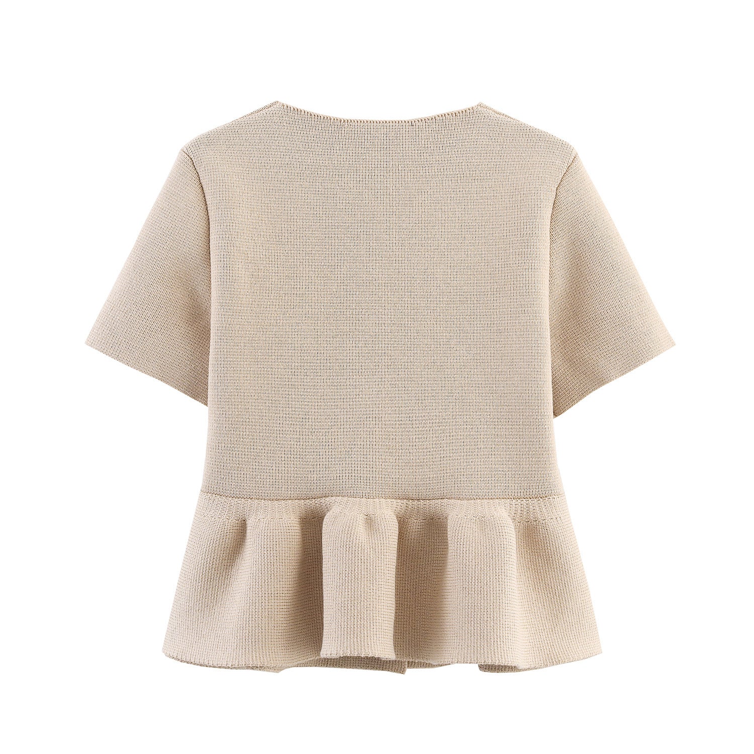Damen Kurzärmlige Blütenbluse mit schwingendem Volant Fudus
