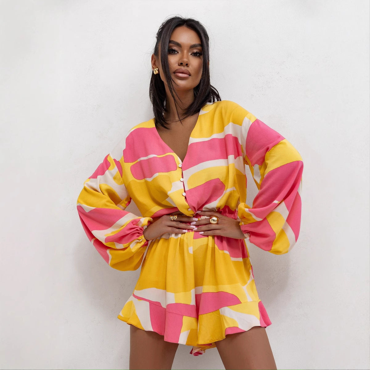 Damen Retro Disco Outfit mit Einem Ärmel