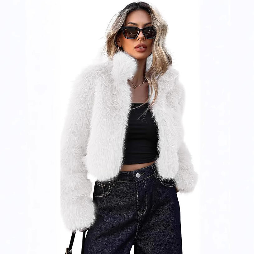 Damen Kurze Kunstpelzjacke mit weichem Fell und eleganter Silhouette Fudus