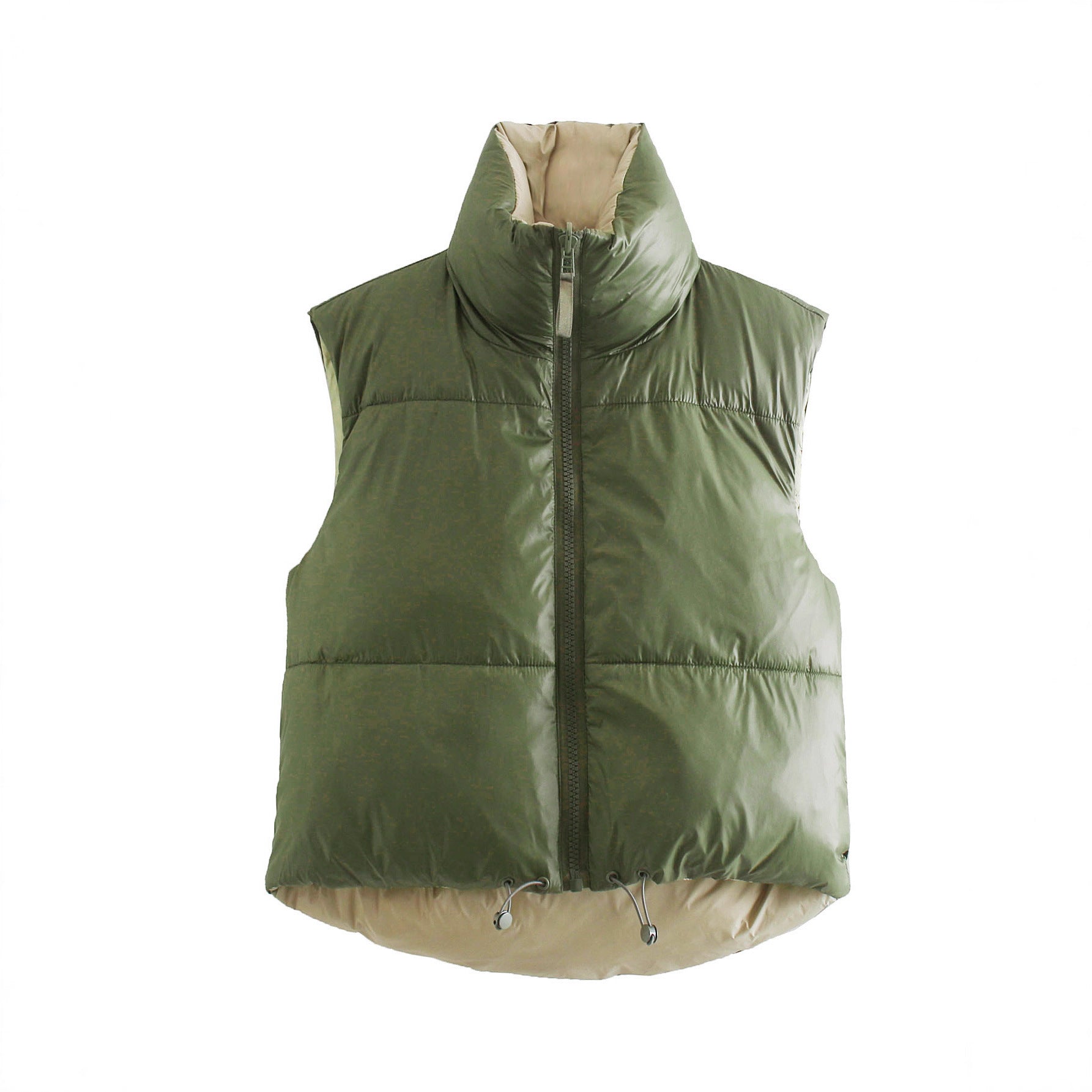 Damen kurze Steppweste mit hohem Kragen und verstellbarem Saum Fudus