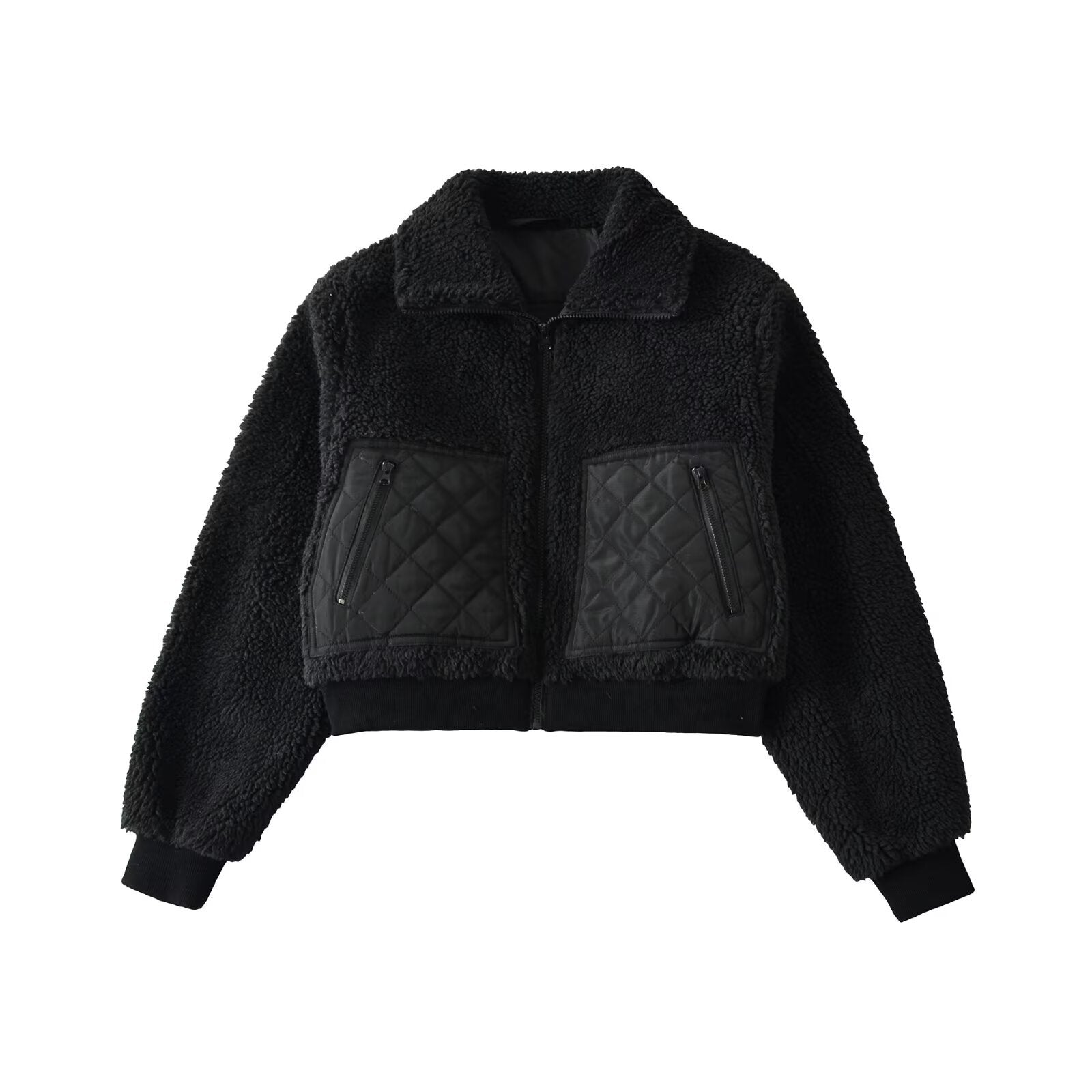 Damen kurze Übergangsjacke mit weich gefüttertem Teddy-Material und modischen Steppdetails Fudus