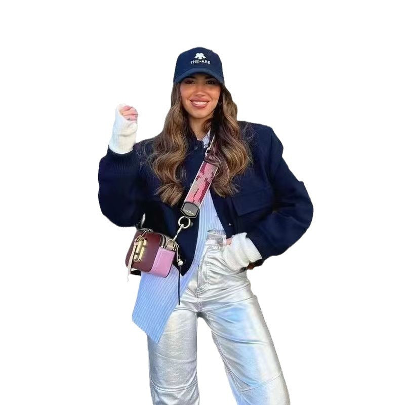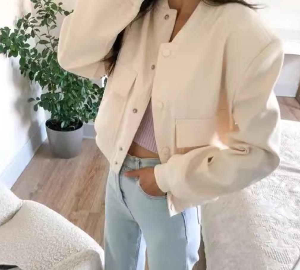 Damen Kurze Zweireihige Jacke Elegant Locker