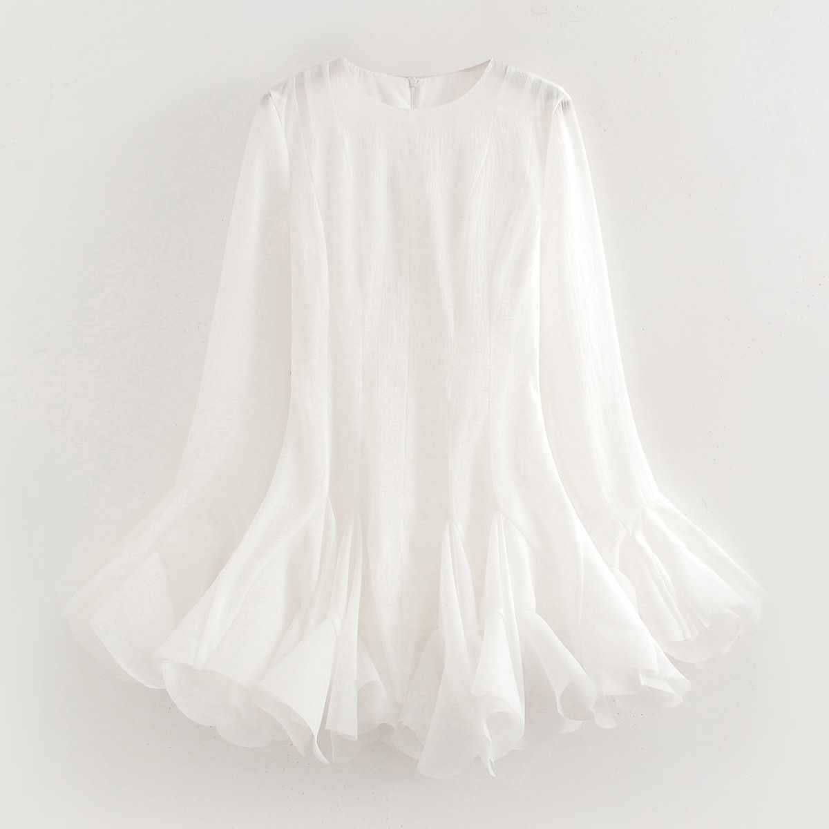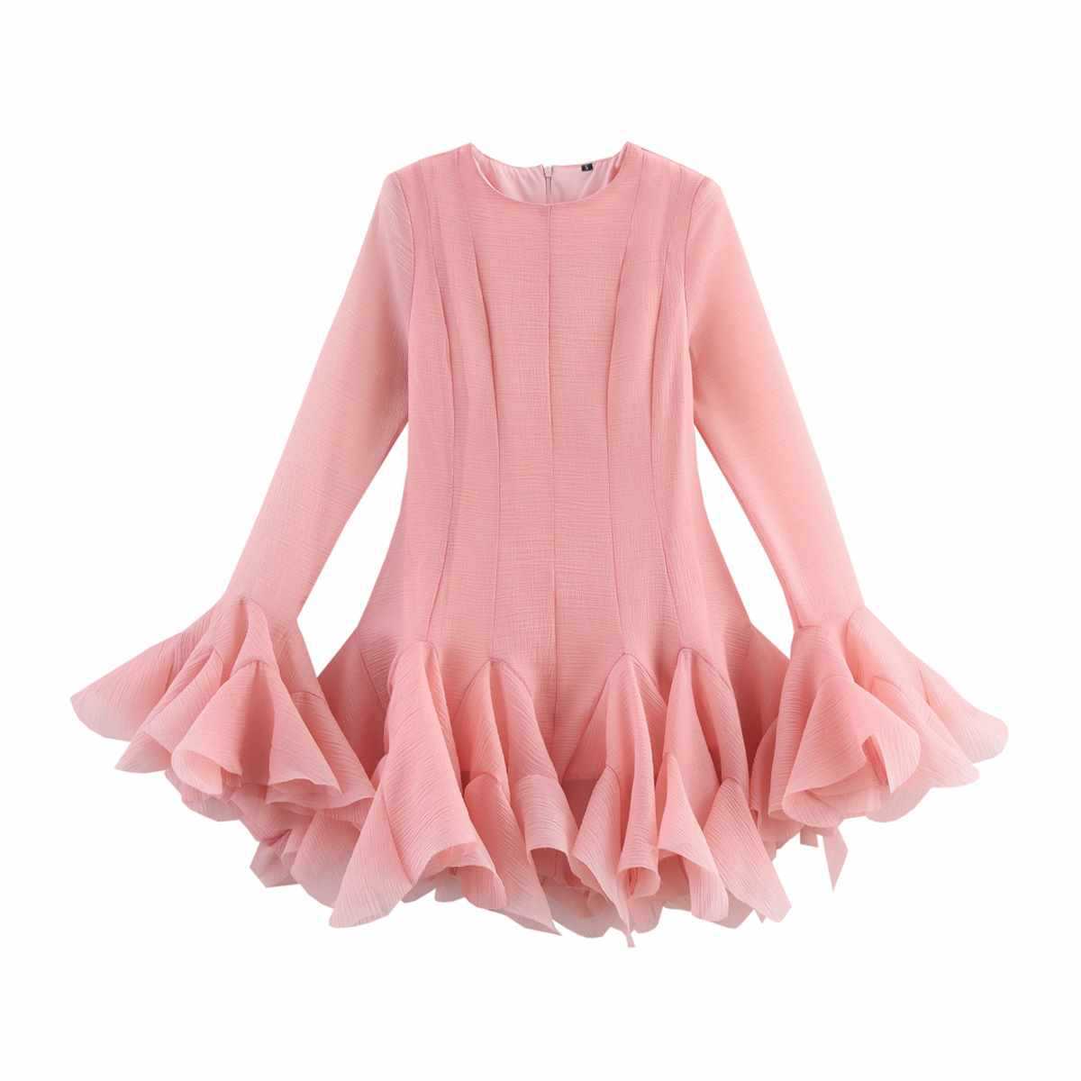 Damen kurzes Kleid mit voluminösen Rüschenschößen und langen Ärmeln Fudus
