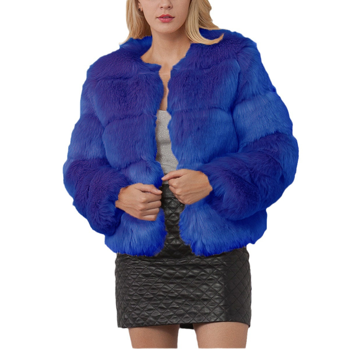 Damen Kurzhaarmantel aus Kunstfell mit Kapuze Fudus