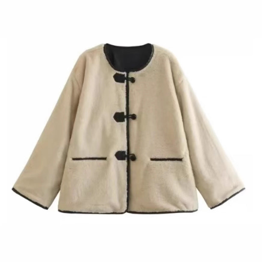 Damen kuschelige Fleecejacke mit klassischen Knopfdetails Fudus
