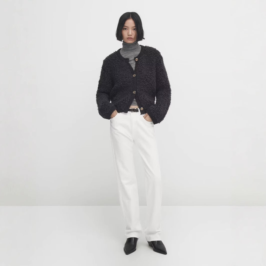 - Design: Modisch geknöpfter Verschluss und eleganter Rundhalsausschnitt