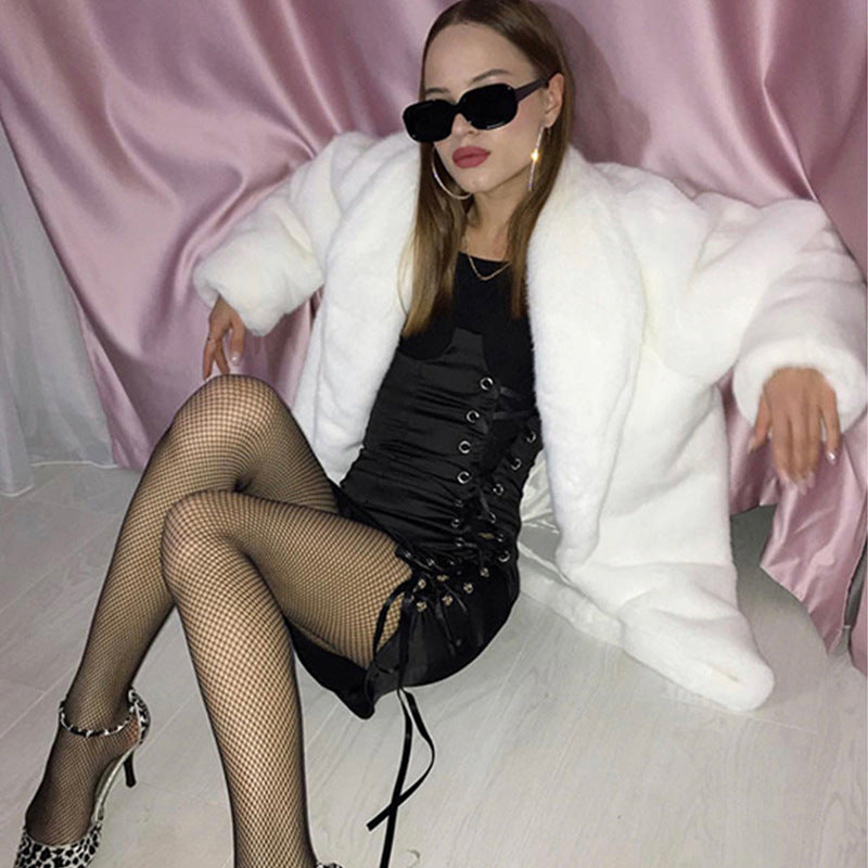 Damen kuschelige Oversized-Jacke aus Plüsch mit breitem Kragen Fudus