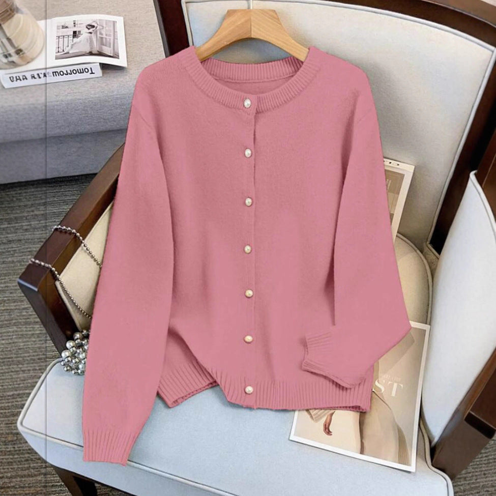 Damen kuschelige Strickjacke mit Perlknöpfen Fudus