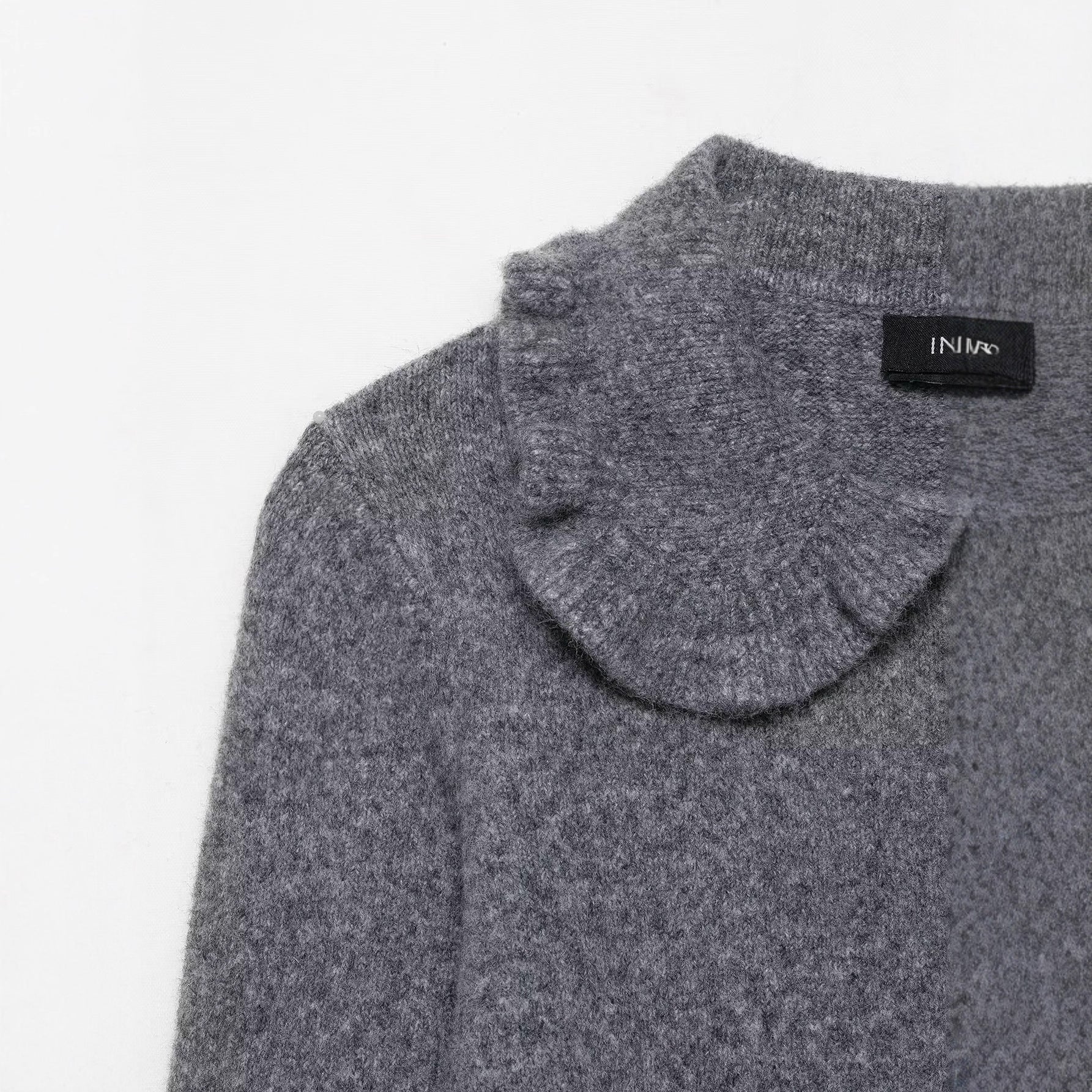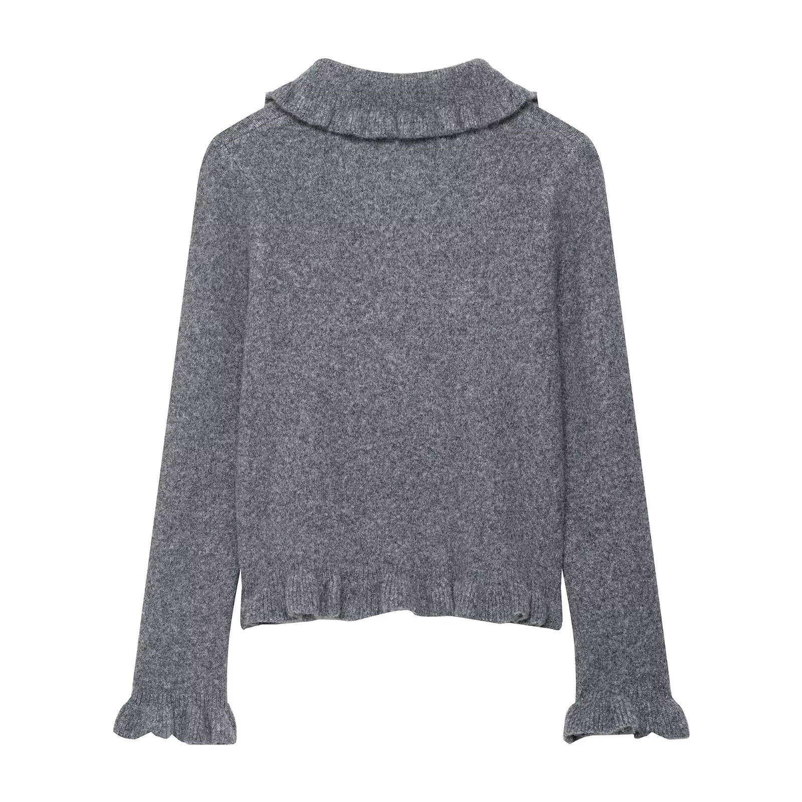 Damen kuschelige Strickjacke mit Rüschenkragen Fudus