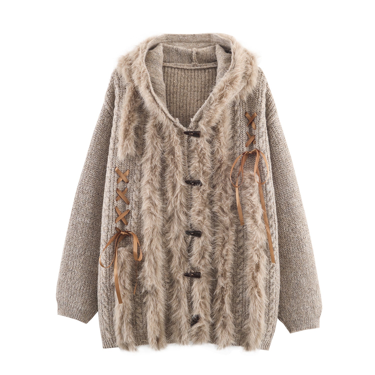 Damen kuschelige und stylische Kunstfelljacke mit eleganten Schnürdetails Fudus