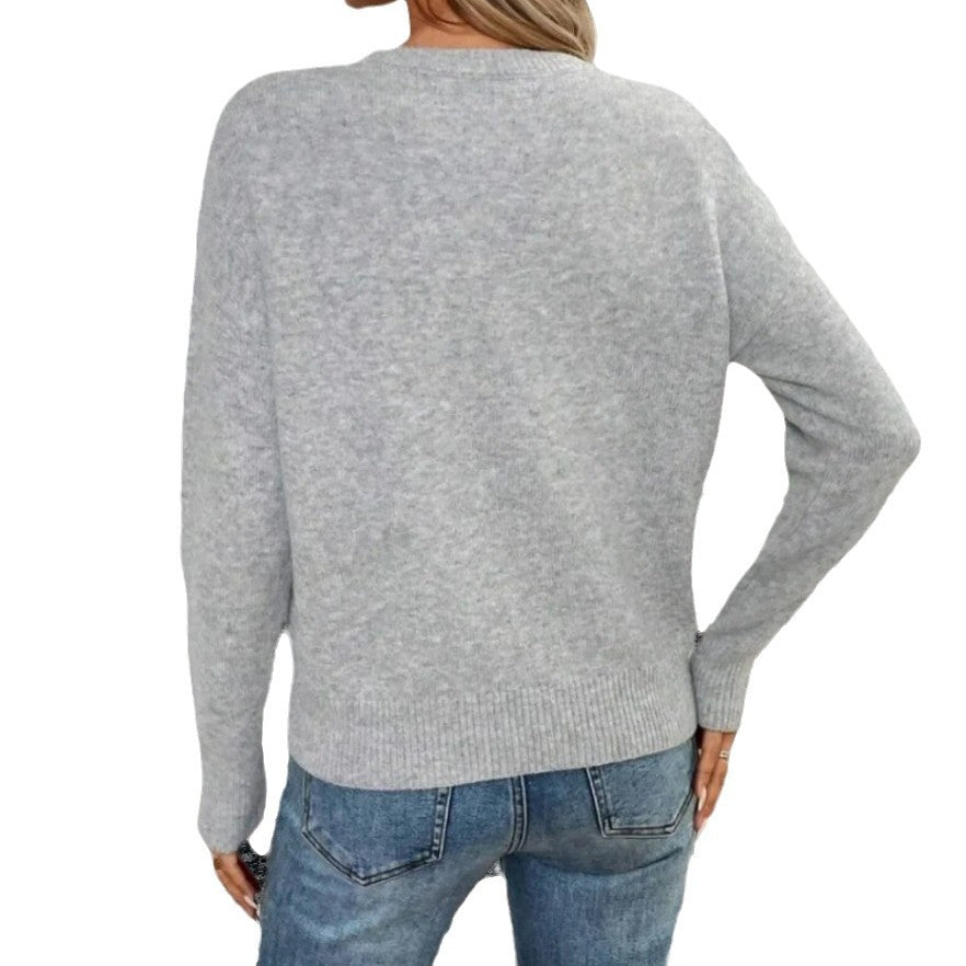 Damen kuscheliger Pullover mit floralen Applikationen Fudus