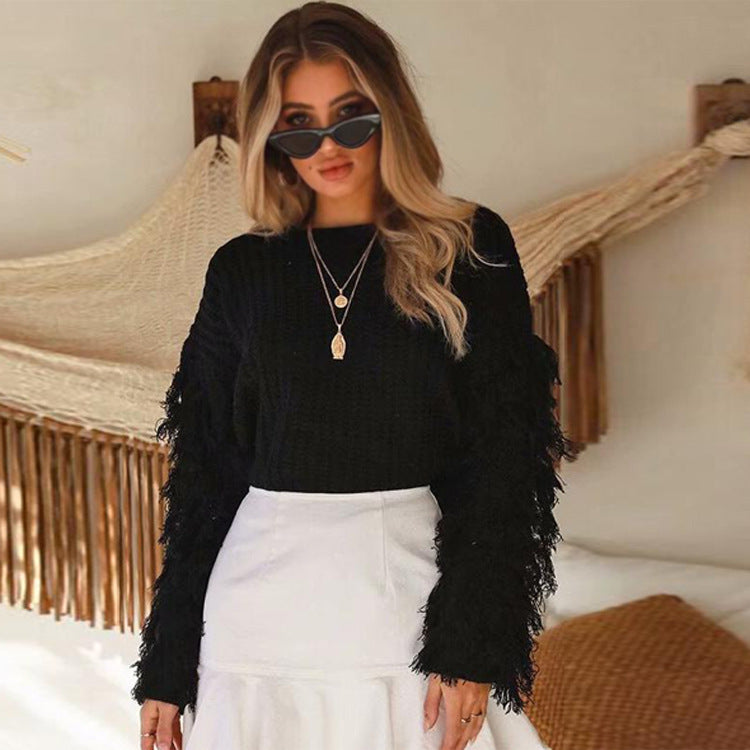 Entdecken Sie den ultimativen Komfort und Stil mit unserem kuscheligen Pullover von Fudus. Dieser modische Damenpullover zeichnet sich durch seine einzigartigen Fransendetails an den Ärmeln aus, die jedem Outfit einen besonderen Touch verleihen.