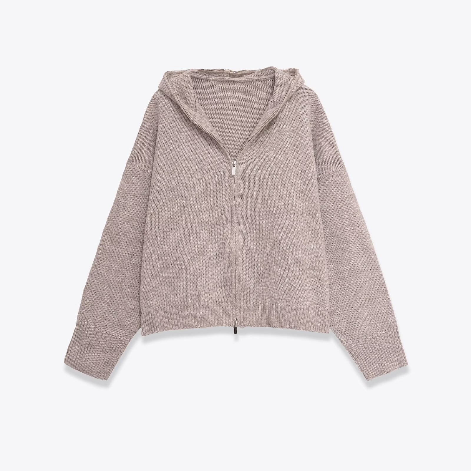 Damen kuscheliger Strickpullover mit Kapuze und Reißverschluss Fudus