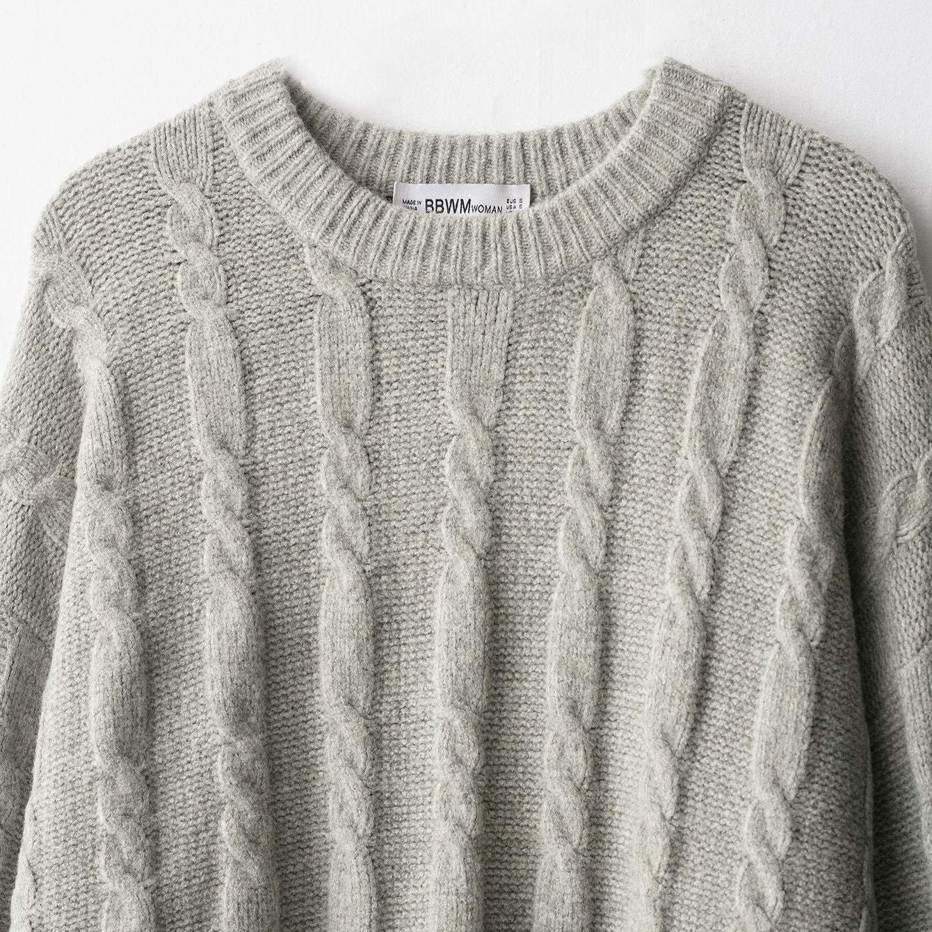 Damen kuscheliger Strickpullover mit Klassischem Zopfmuster Fudus