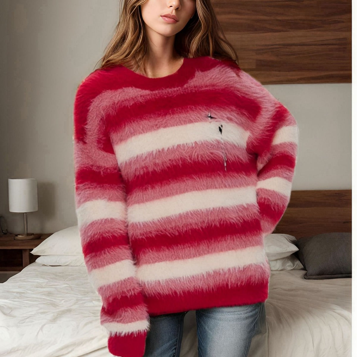 Damen kuscheliger Strickpullover mit modernen Streifen Fudus
