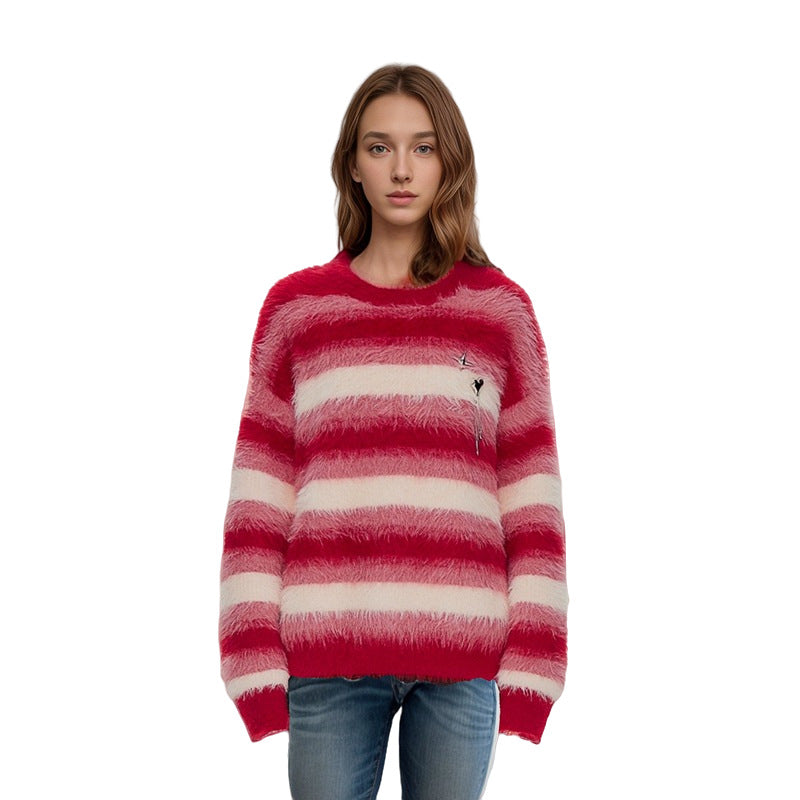 - Trendiges Design: Die auffälligen Streifen in warmen Farbtönen verleihen dem Pullover einen modernen Look und machen ihn zu einem Blickfang.