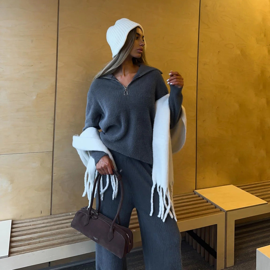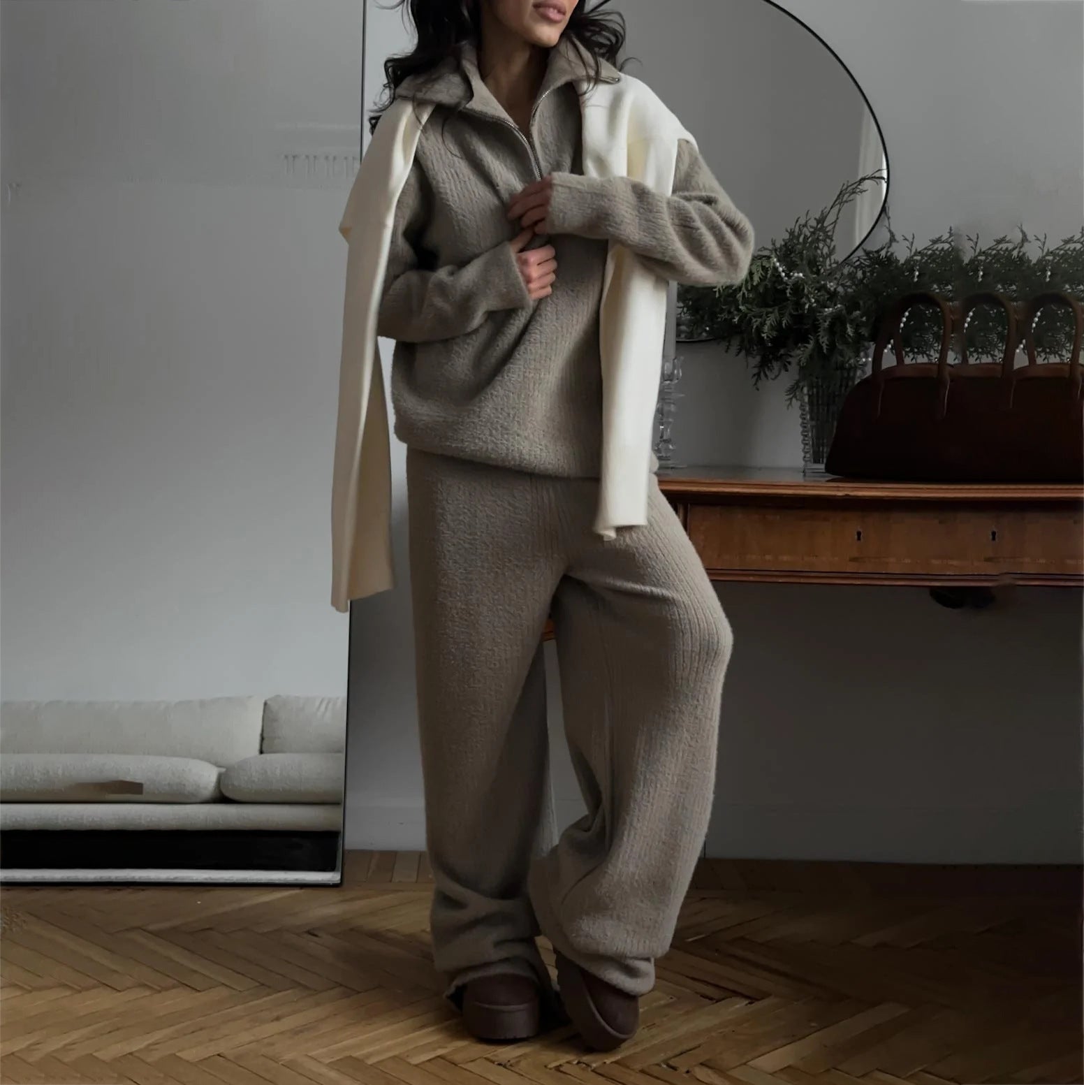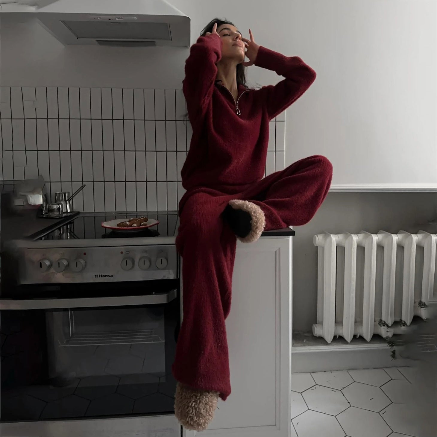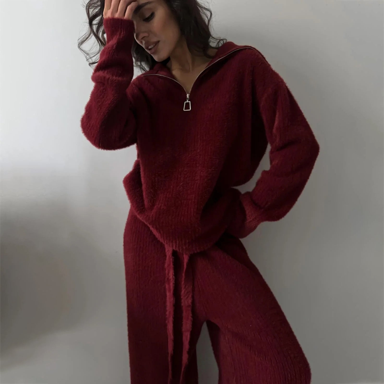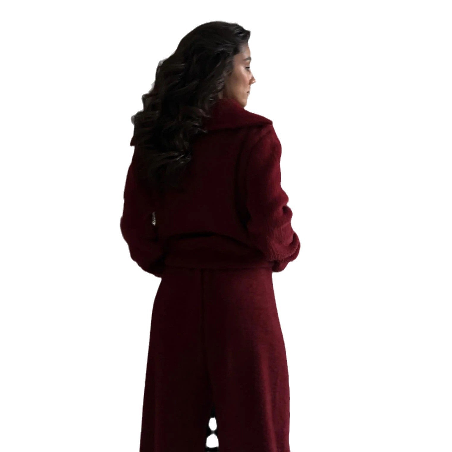 Damen kuscheliger Sweatanzug mit hohem Kragen und seitlichen Einschubtaschen Fudus