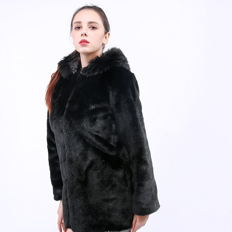 Damen Kuscheliger und eleganter Kunstpelzmantel mit Kapuze Fudus