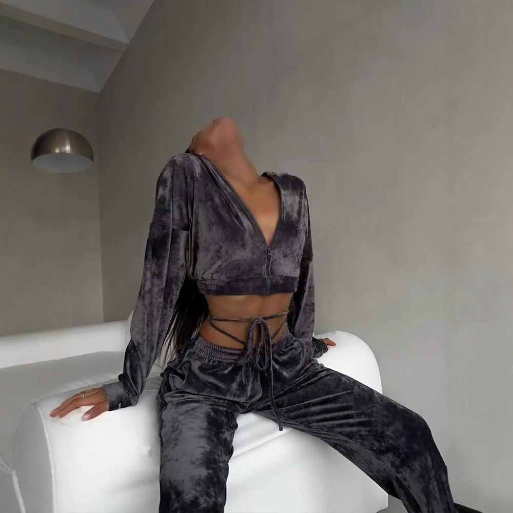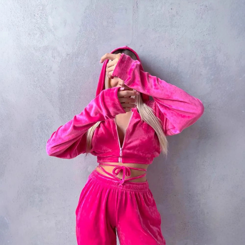Damen kuscheliges Velours-Set mit Kapuzenoberteil Fudus