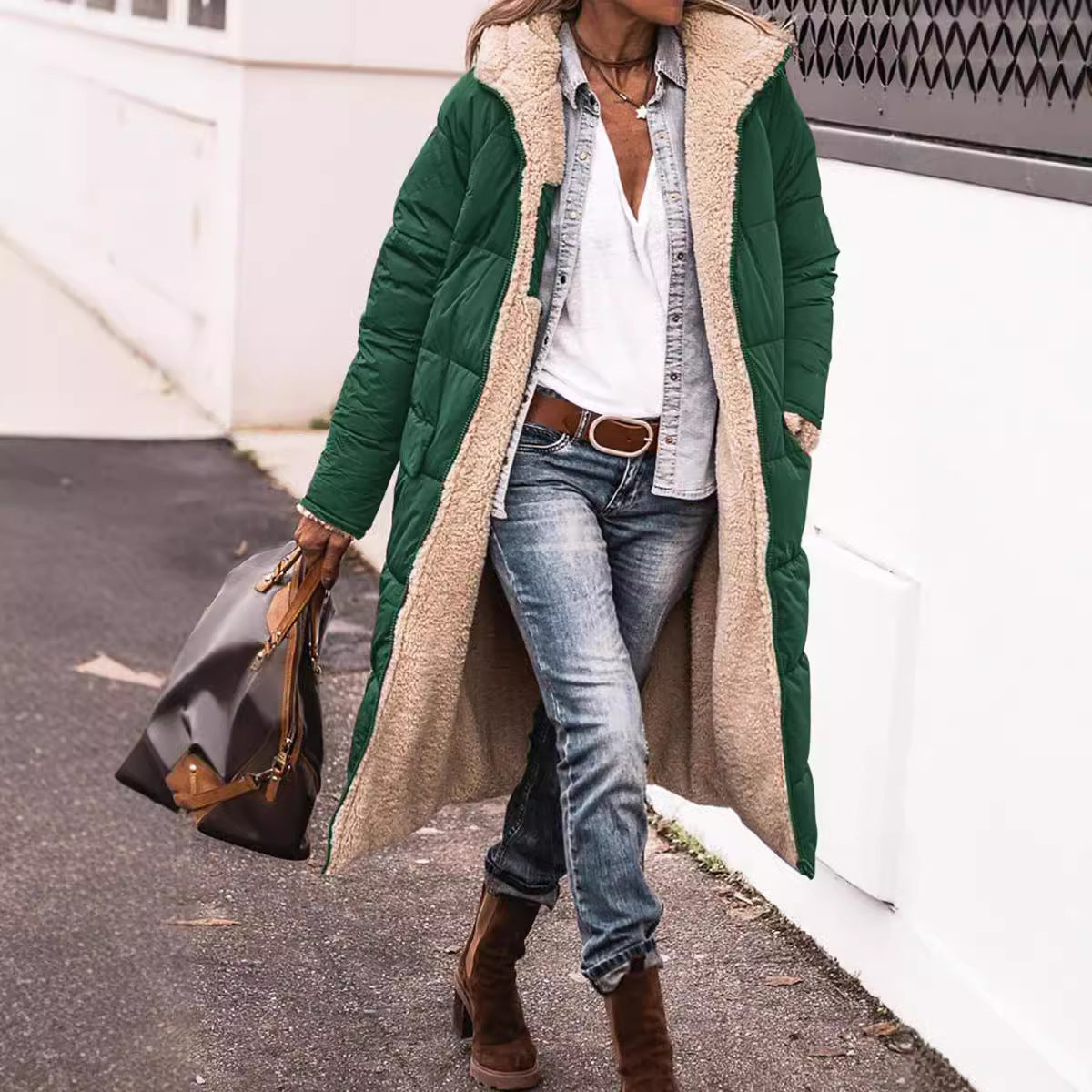 • Praktische Details: Der Mantel verfügt über großzügige Taschen, die ausreichend Platz für Ihre Essentials bieten. Der hohe Kragen schützt vor kaltem Wind und sorgt für zusätzlichen Komfort.