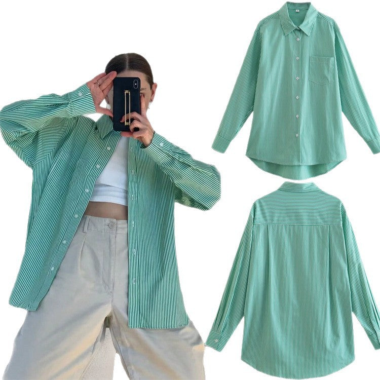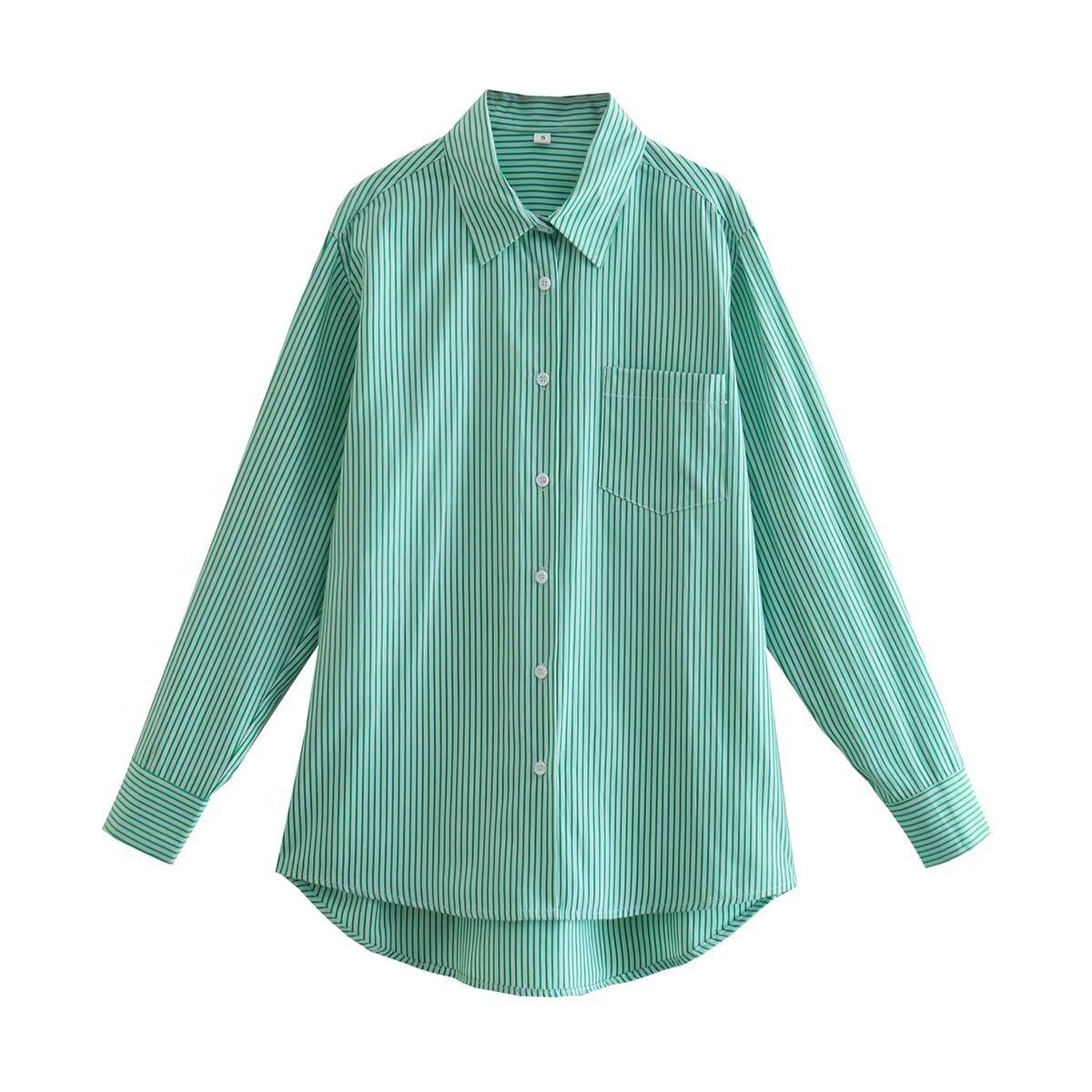 Damen Langarmbluse mit feinem Streifenmuster und Brusttasche Fudus