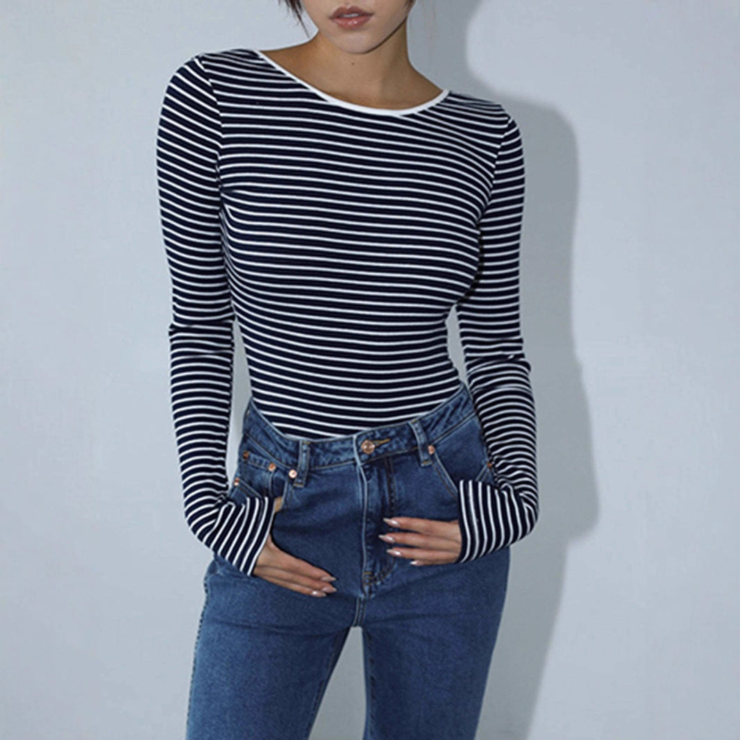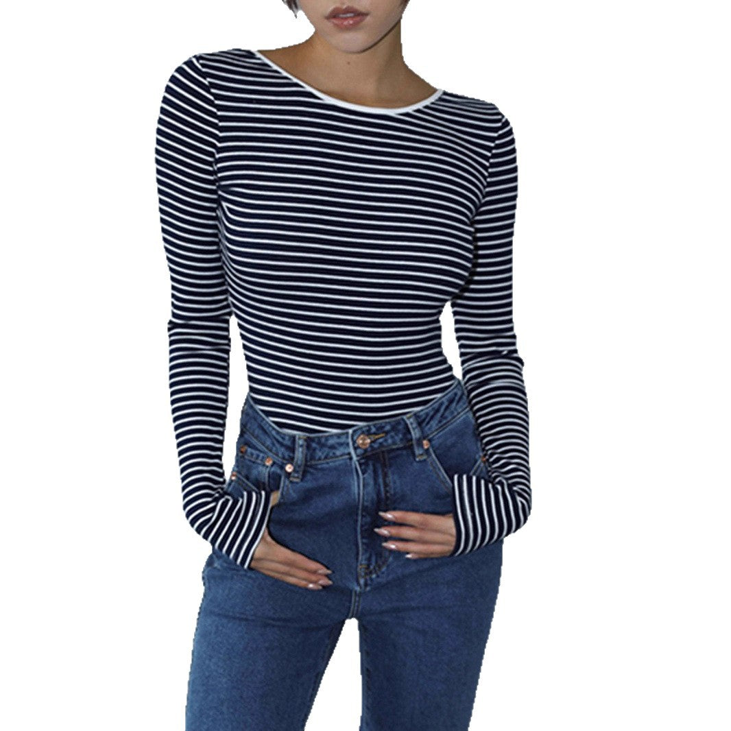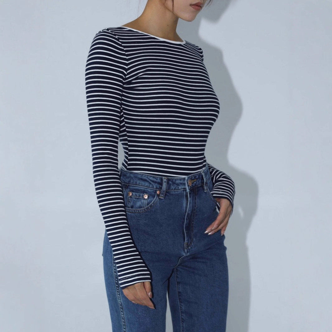 Damen Langärmeliger Body mit offenem Rücken und Streifenmuster Fudus
