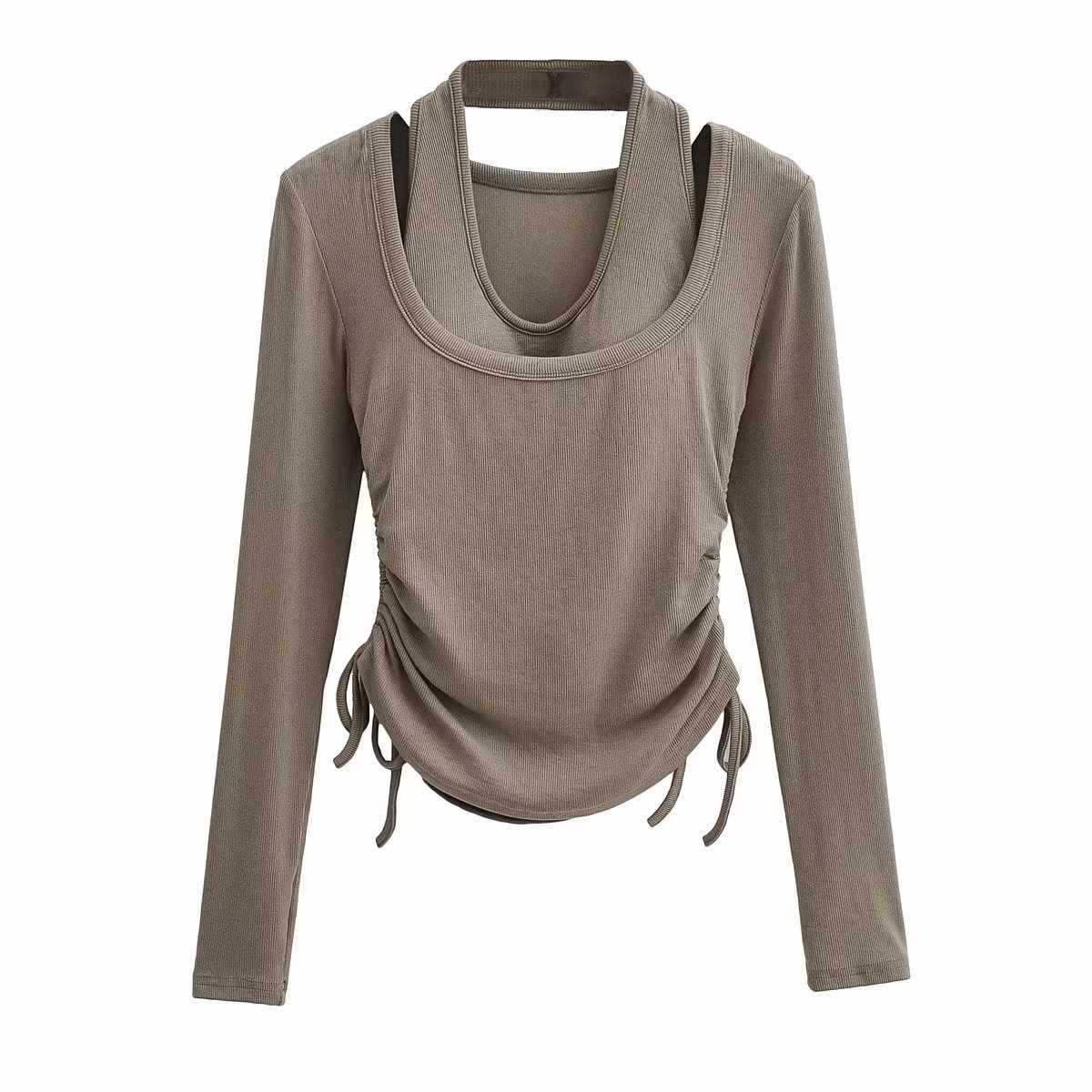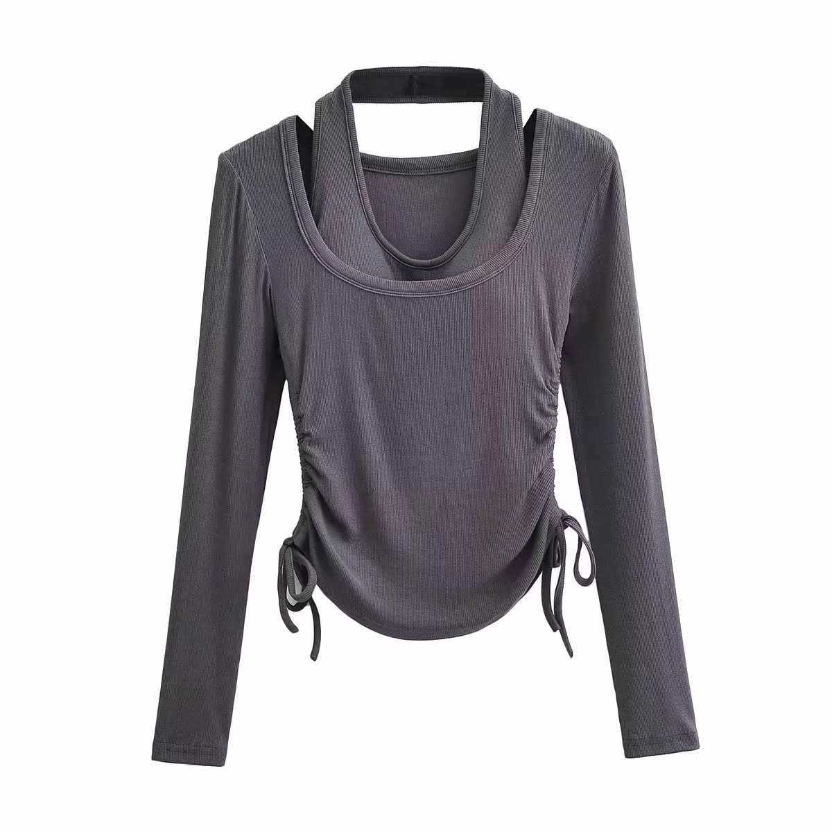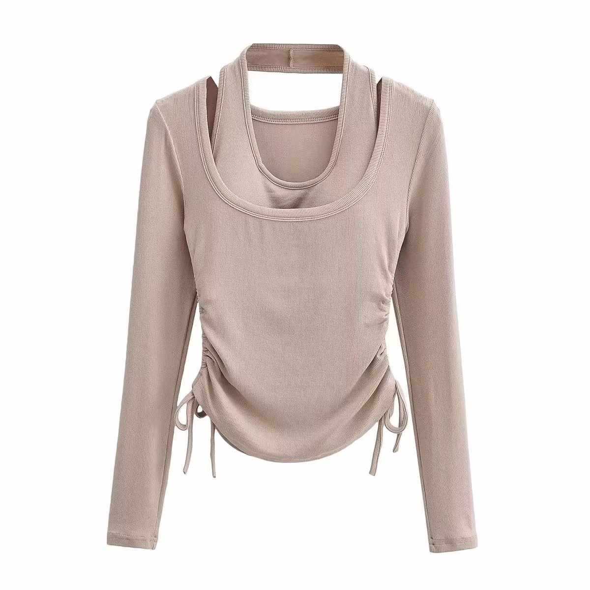 Damen langärmeliges Oberteil mit dekorativem Knoten Fudus