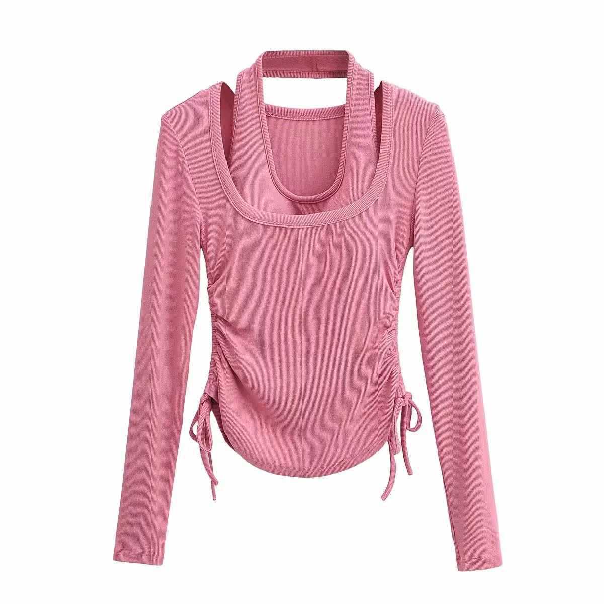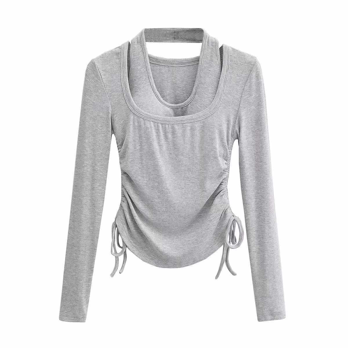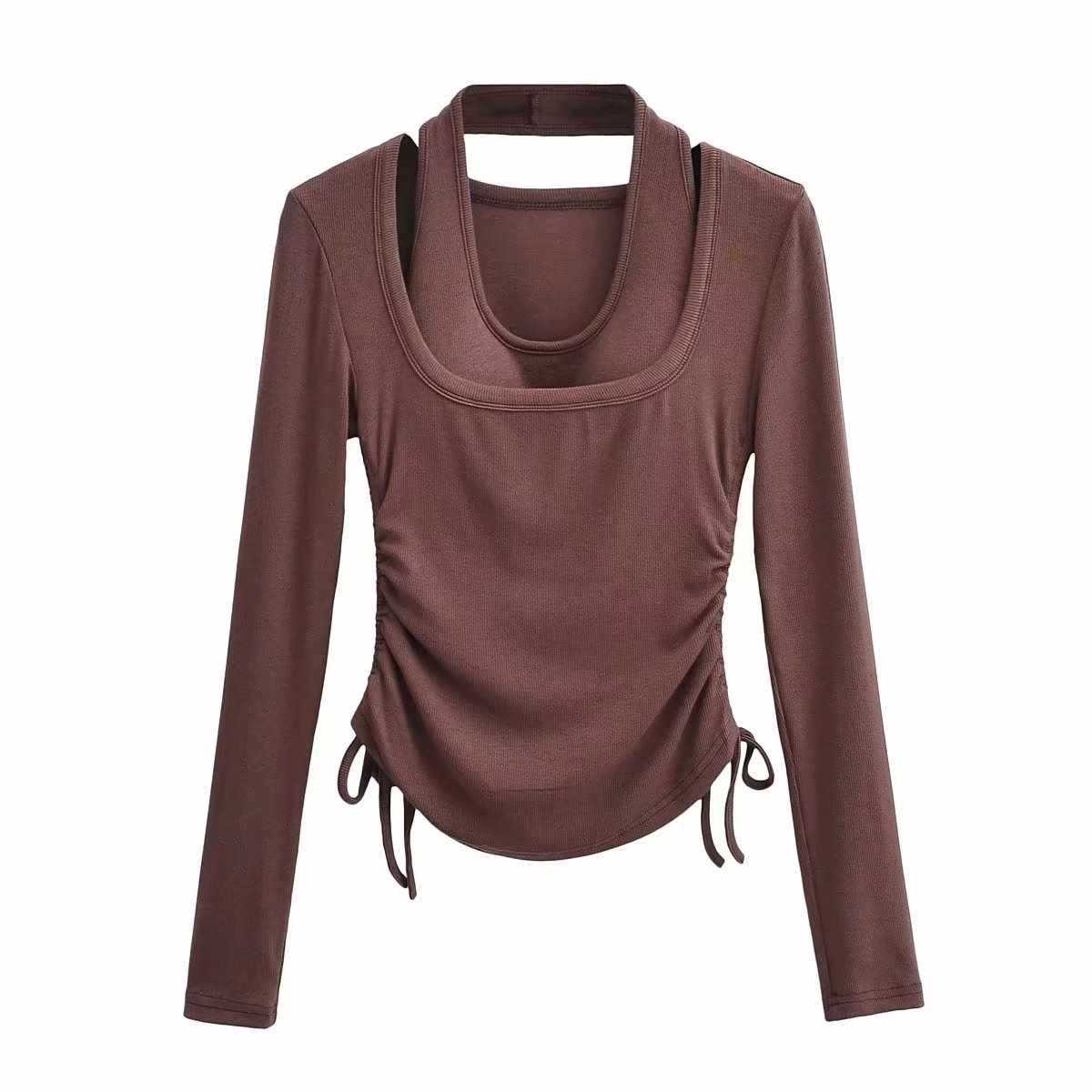 Damen langärmeliges Oberteil mit dekorativem Knoten Fudus