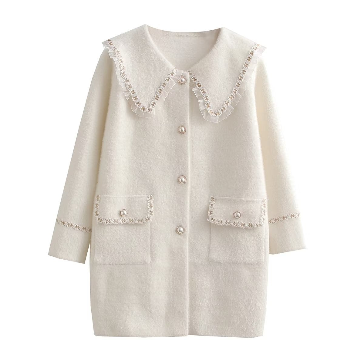 Damen Langarmjacke mit dekorativem Kragen und funktionalen Taschen Fudus
