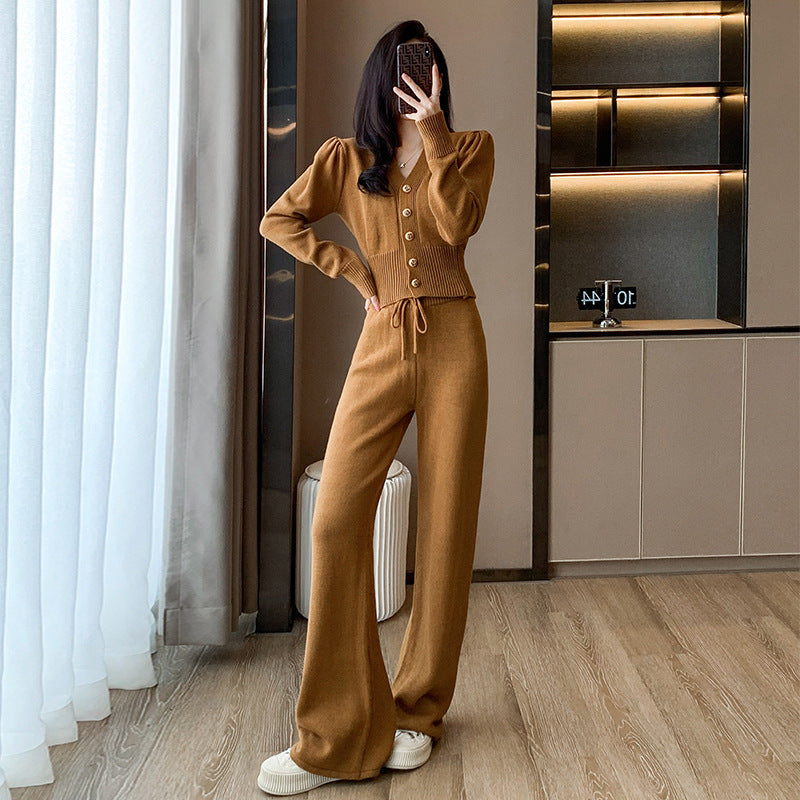 Damen langärmliger Strickanzug mit Elastikbund Fudus