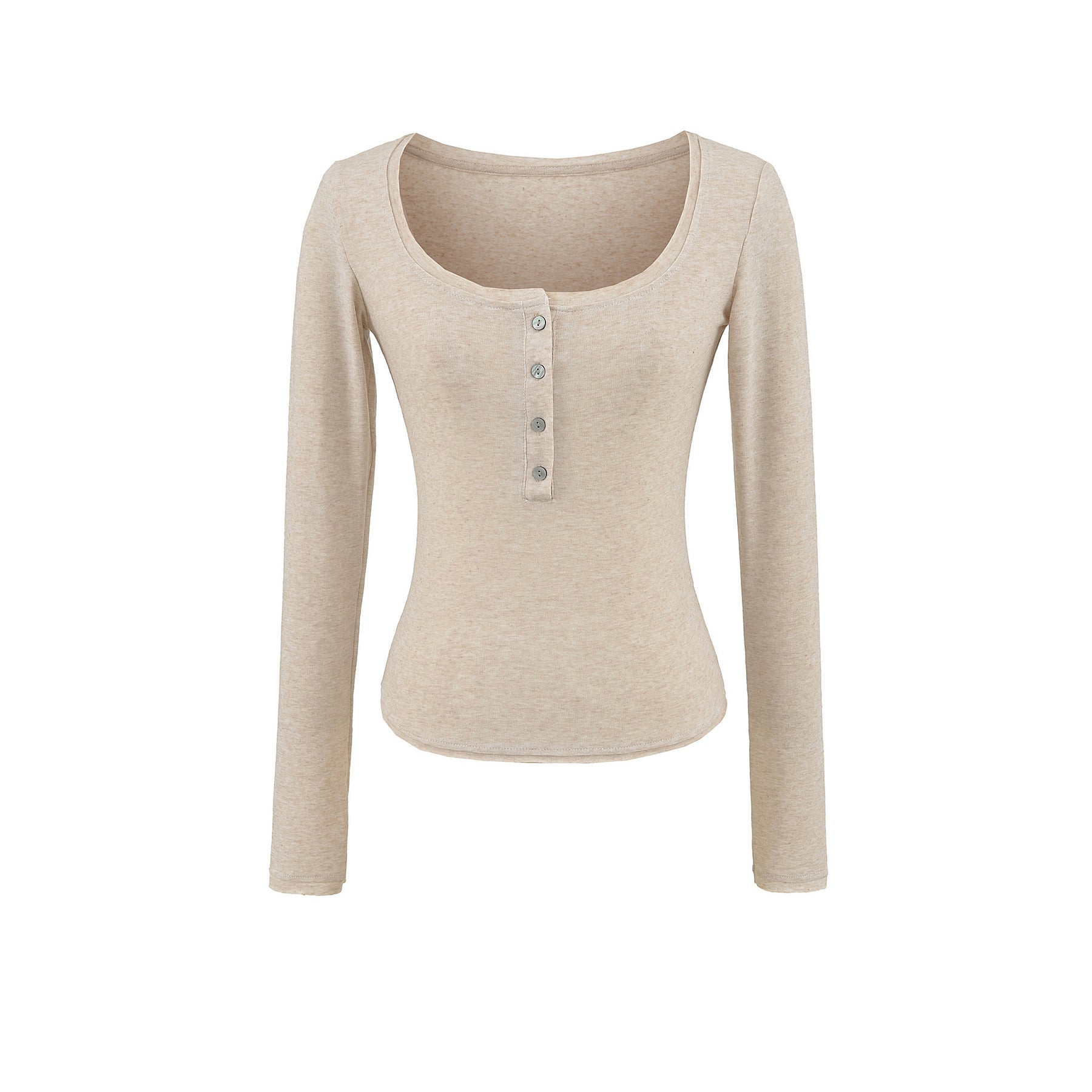 Damen langärmliges Basic-Oberteil mit Rundhalsausschnitt und Knopfleiste Fudus