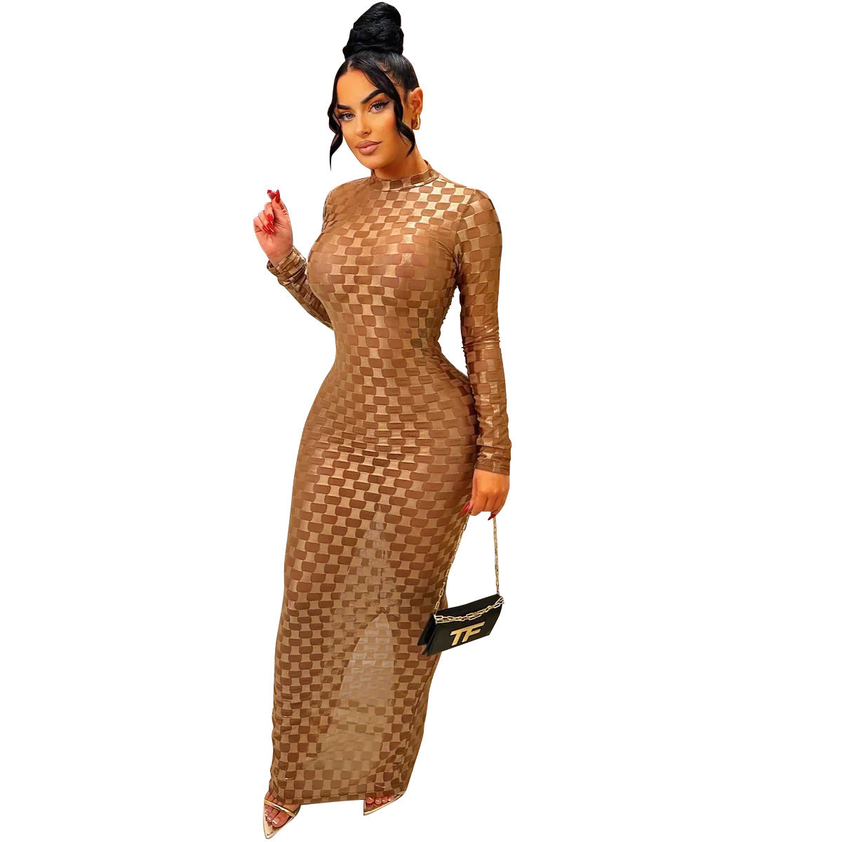 Das Damen langärmlige figurbetonte Netzkleid setzt mit seinem trendigen Netzstoff und figurbetonten Schnitt ein modisches Statement. Die langen Ärmel und der leichte, atmungsaktive Stoff sorgen für Komfort und Eleganz. Perfekt für Partys oder besondere Anlässe!