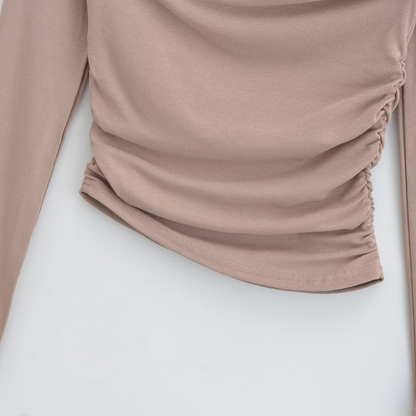 Damen langärmliges Oberteil mit gerafftem Design und asymmetrischem Ausschnitt Fudus
