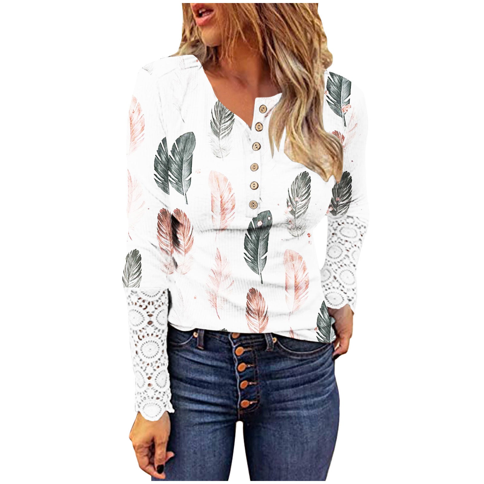 Damen langärmliges T-Shirt mit Spitze und modernem Leo-Muster Fudus