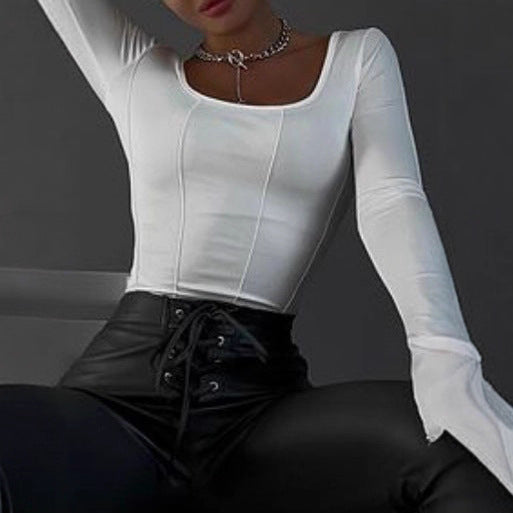 Damen Langarmoberteil mit quadratischem Ausschnitt und lässigem Schnitt Fudus