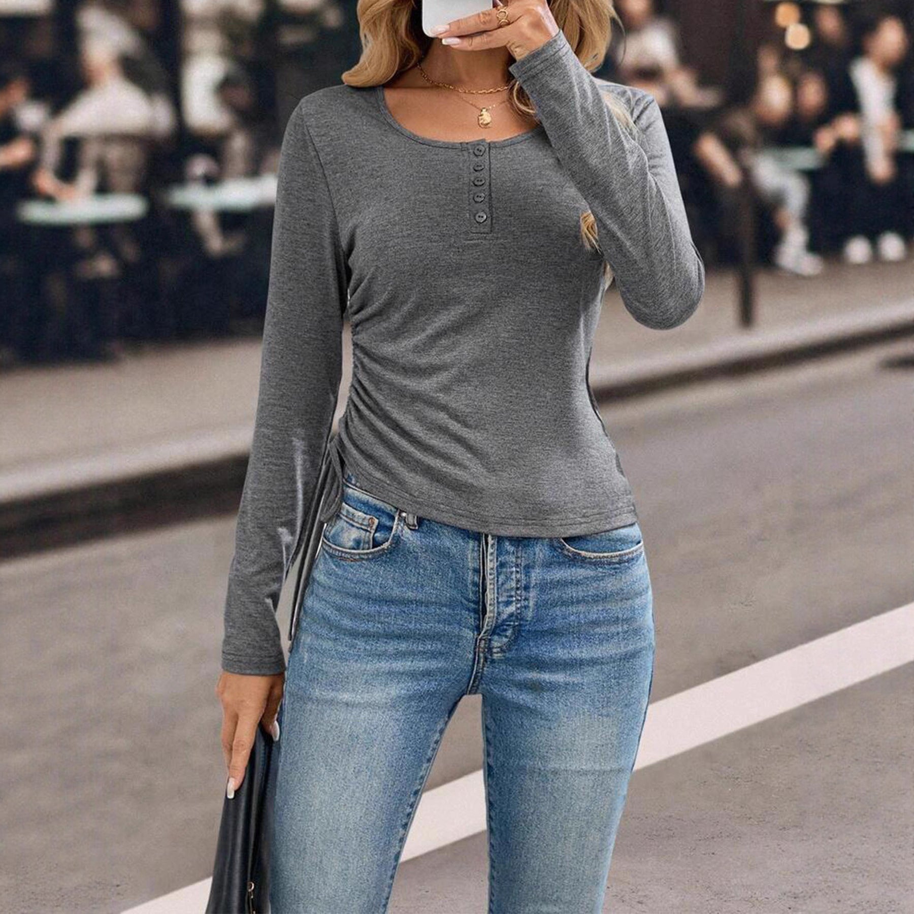 Damen Langarmshirt mit Knopfleiste und figurbetontem Schnitt Fudus