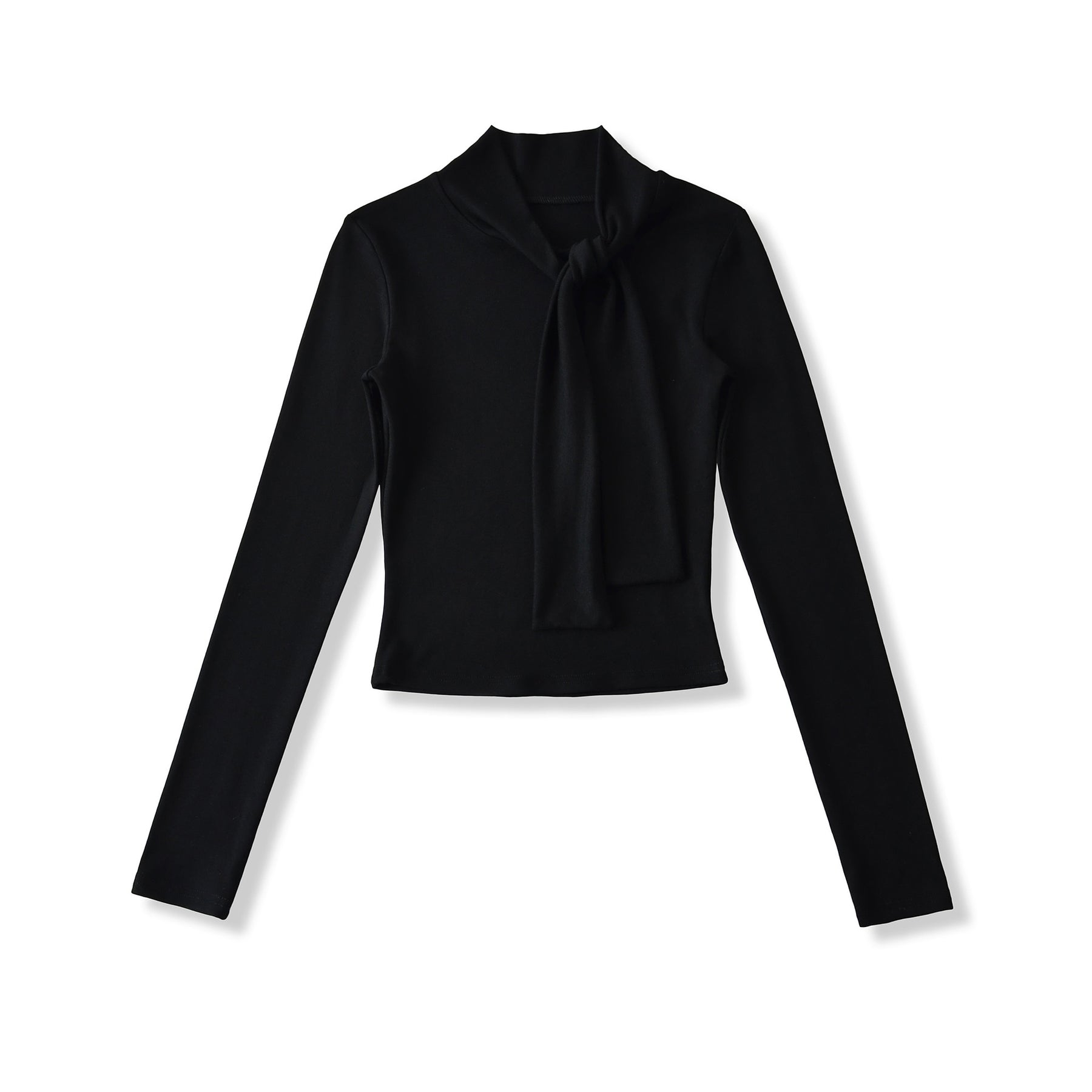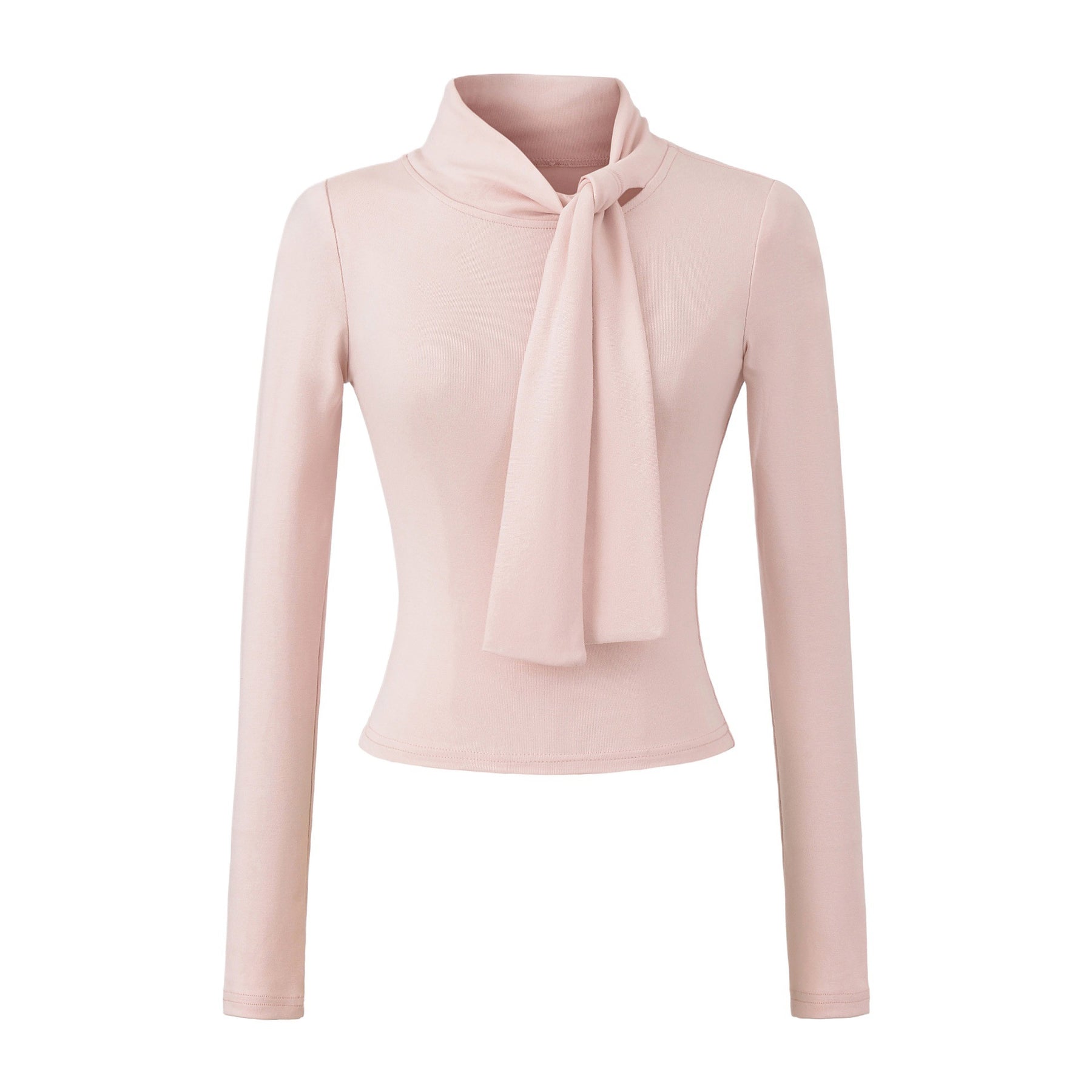 Damen Langarmshirt mit schickem Schlupfkragen und femininer Schleifenoptik Fudus