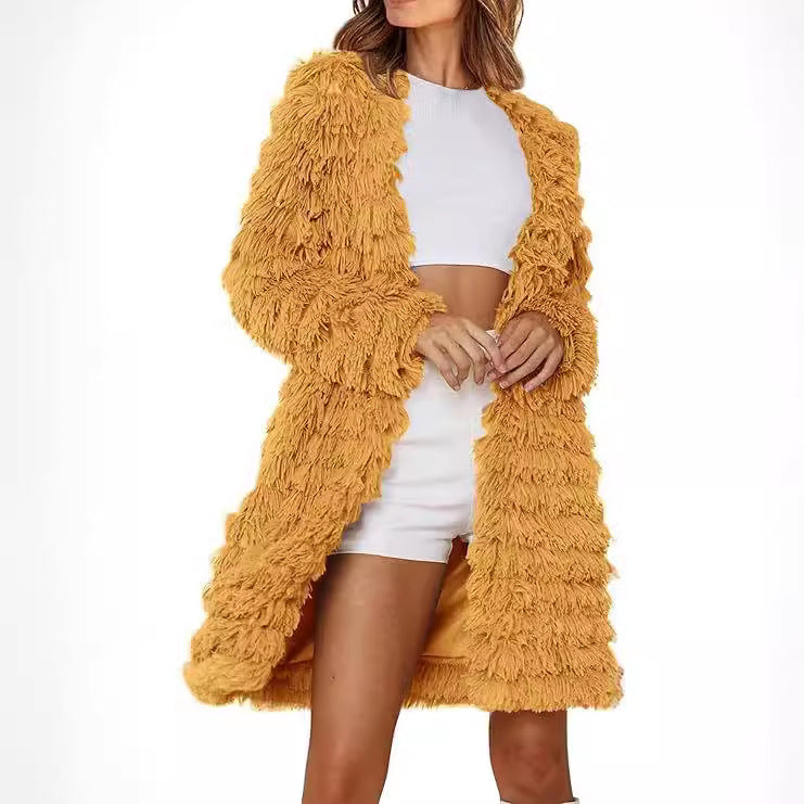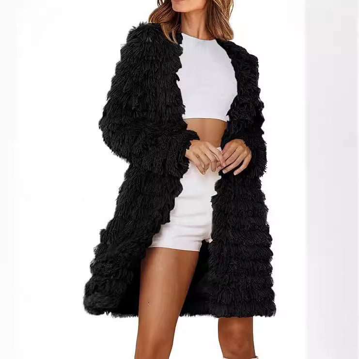 Damen Langer Fransenmantel Fudus
