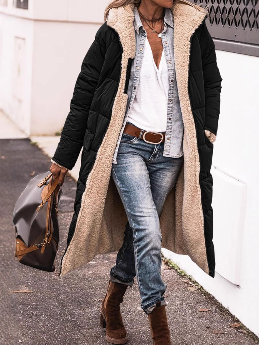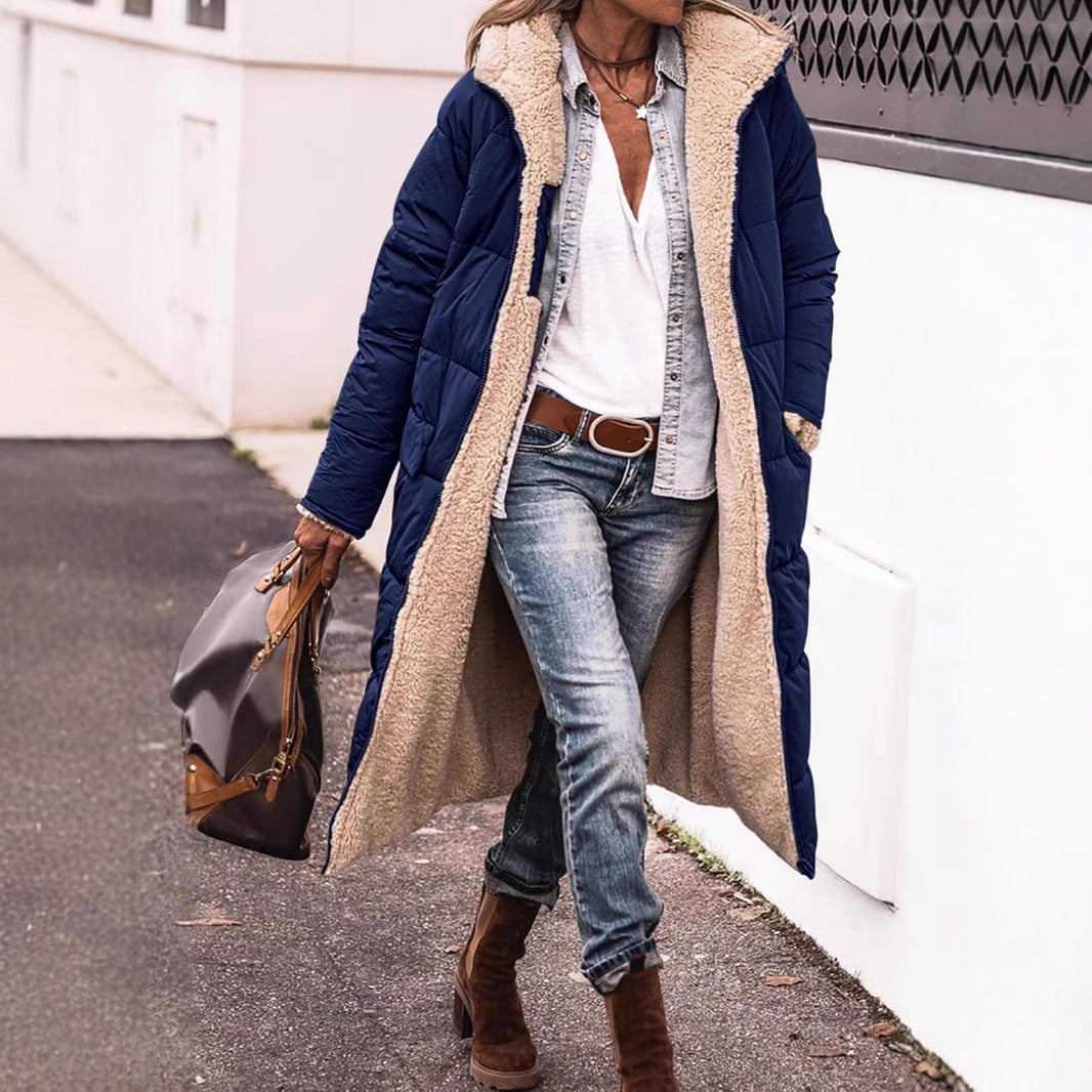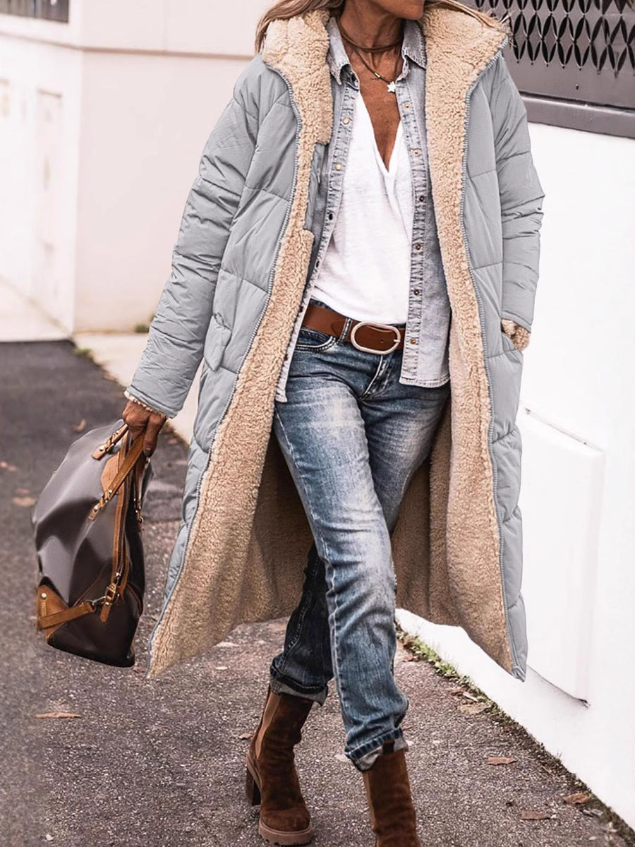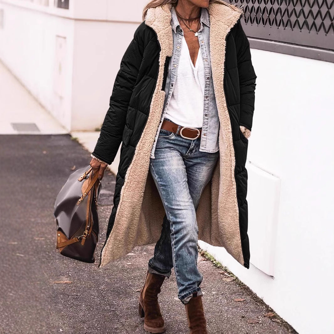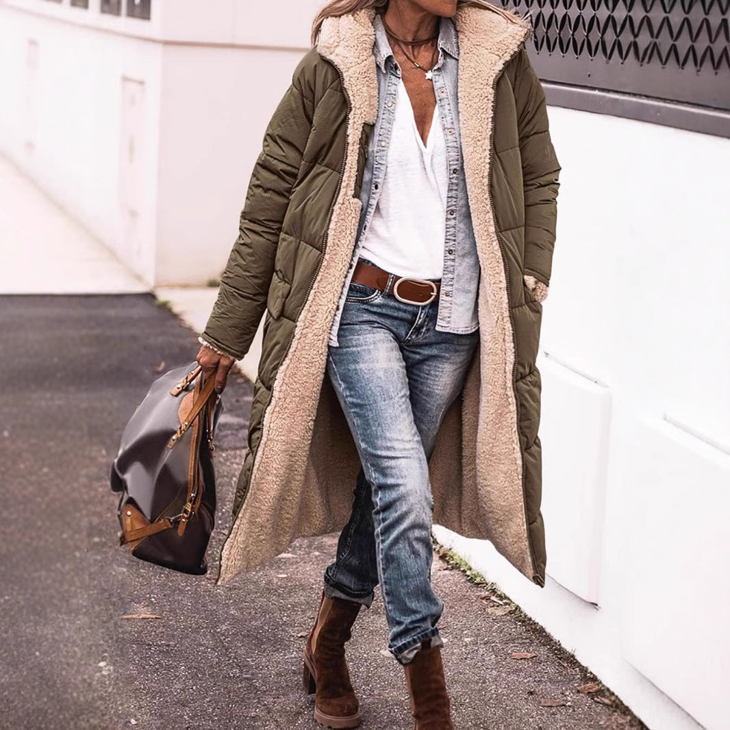 Damen Langer gesteppter Wintermantel mit kuscheligem Innenfutter Fudus
