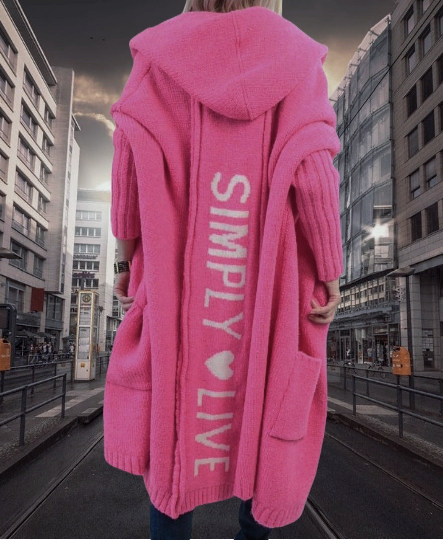 Damen langer Kapuzenmantel mit modischem Schriftzug Fudus