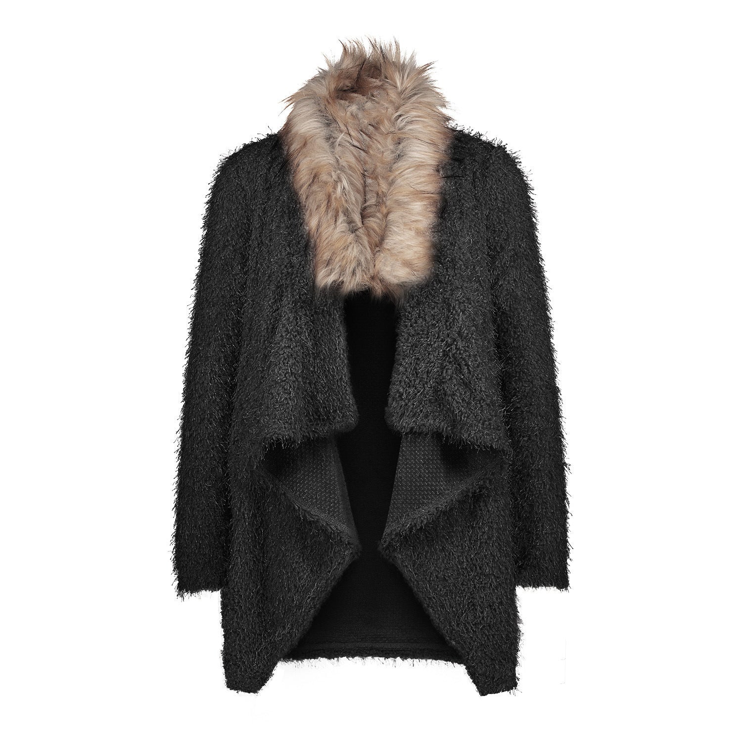 Damen Langer Kuscheliger Cardigan mit Kunstfellkragen Fudus